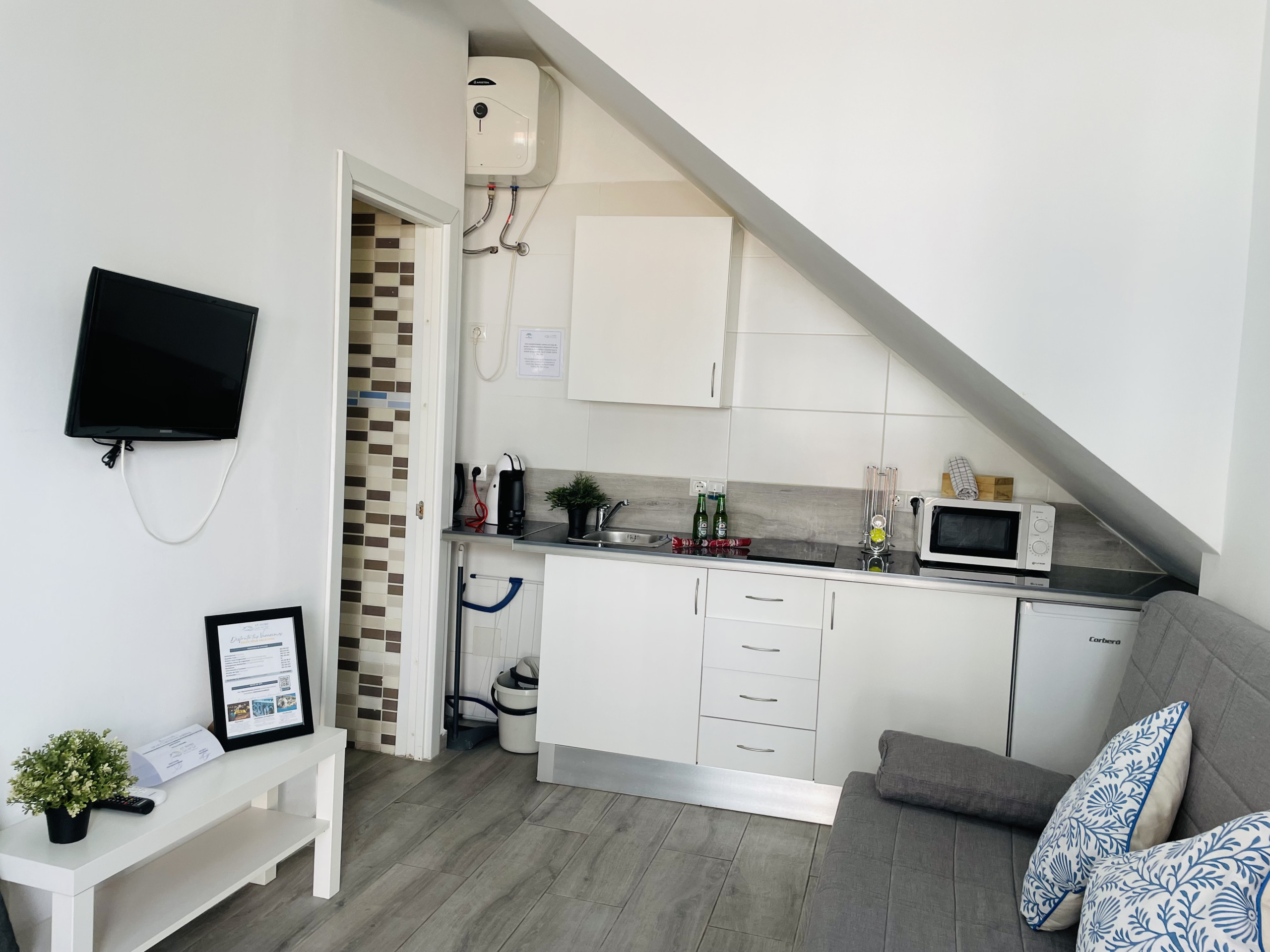 Este acogedor apartamento está totalmente equipado para satisfacer todas tus necesidades. El salón cuenta con una cocina incorporada que dispone de una amplia gama de comodidades, como nevera, cafetera de cápsulas, hervidor de agua, microondas, tostadora, entre otros. Además, cuenta con un cómodo sofá, aire acondicionado y televisión para tu entretenimiento. En el dormitorio, encontrarás una cómoda cama de matrimonio y un amplio armario para almacenar tus pertenencias. El baño está equipado con una moderna ducha y un secador de pelo.