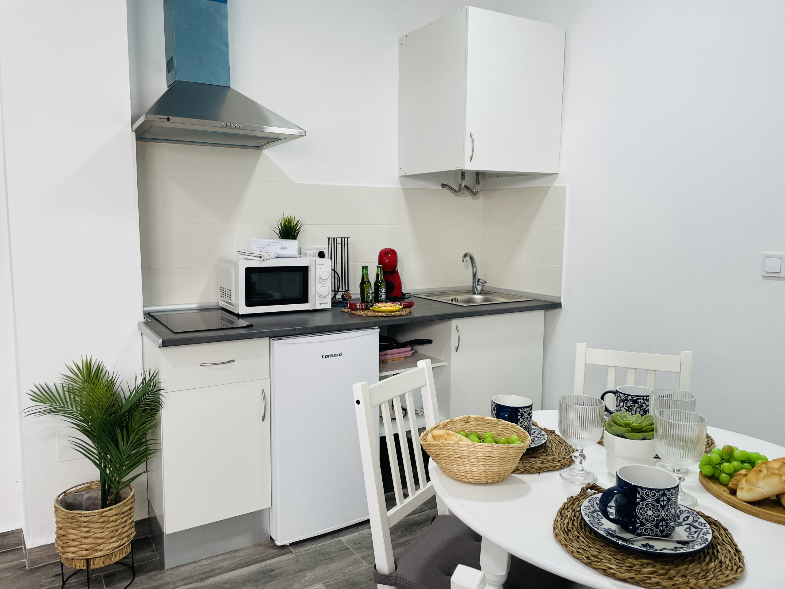 Este apartamento está totalmente equipado para garantizar una estancia cómoda. Cuenta con un acogedor salón con cocina americana, un dormitorio con cama de matrimonio, un baño, un pequeño balcón y un encantador patio andaluz.