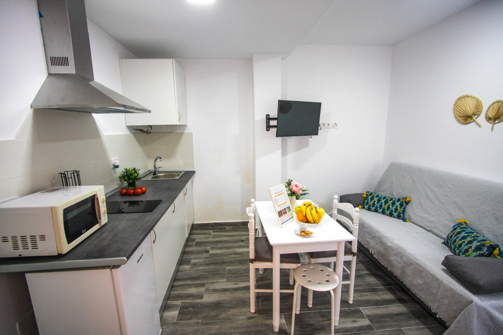 Este apartamento está totalmente equipado para garantizar una estancia cómoda. Cuenta con un acogedor salón con cocina americana, un dormitorio con cama de matrimonio, un baño, un pequeño balcón y un encantador patio andaluz.