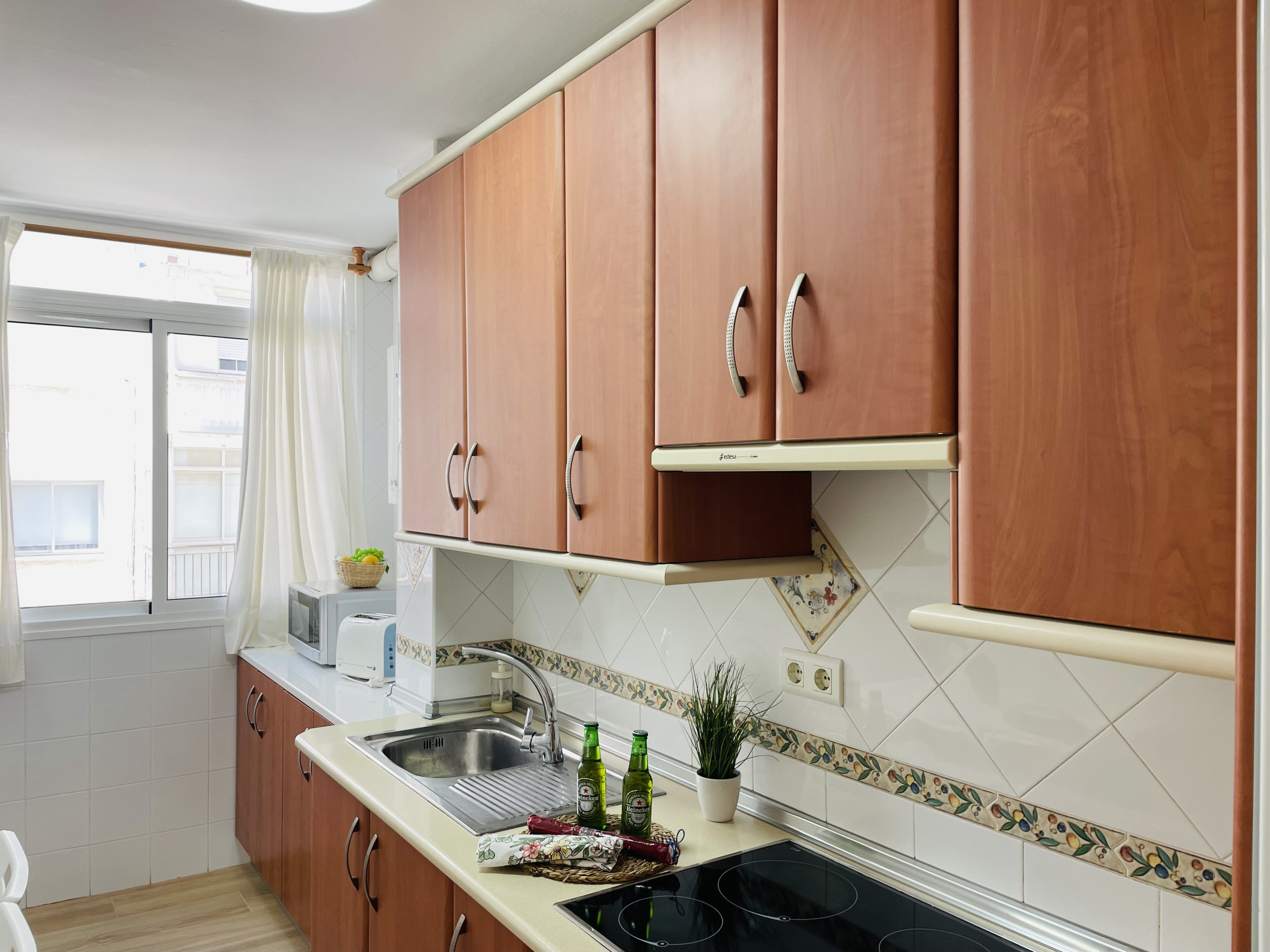El apartamento cuenta con dos dormitorios, un salón espacioso y lleno de luz natural, equipado con aire acondicionado para asegurar tu confort en cualquier época del año. La cocina independiente está completamente equipada para que te sientas como en casa, y el baño moderno dispone de un práctico plato de ducha.