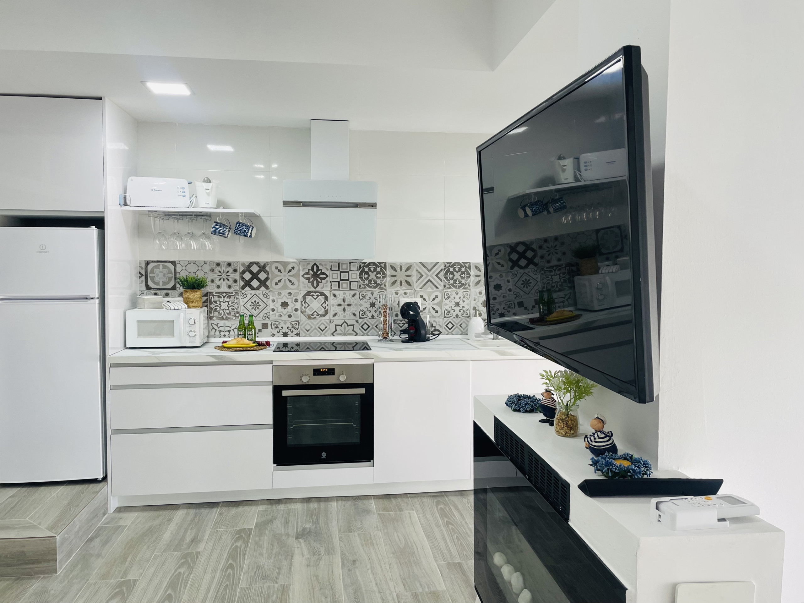 Salón con Cocina Abierta: Un espacio amplio y luminoso, perfecto para relajarse y disfrutar de comidas en compañía. La cocina está completamente equipada con todo el menaje y electrodomésticos necesarios para cocinar.