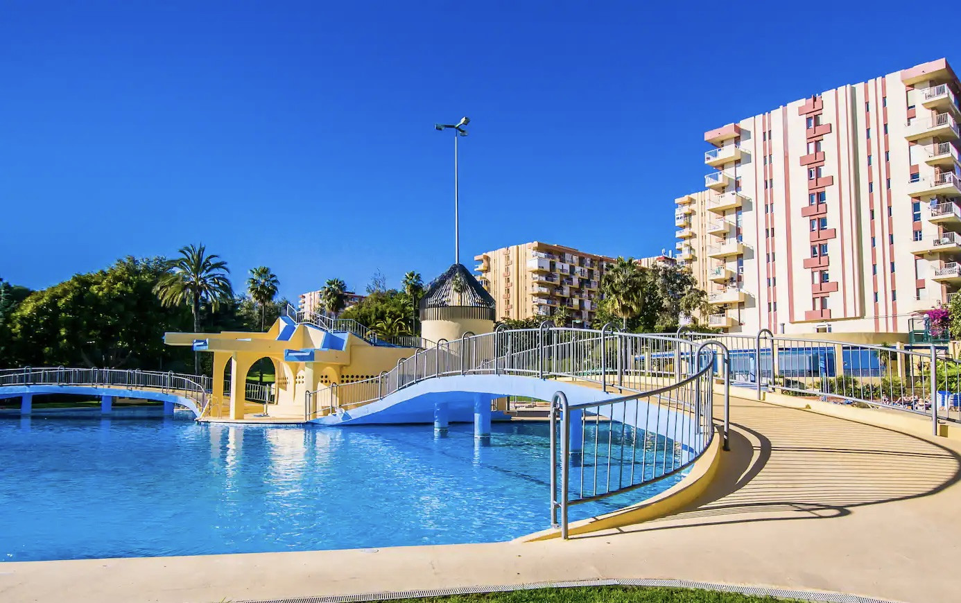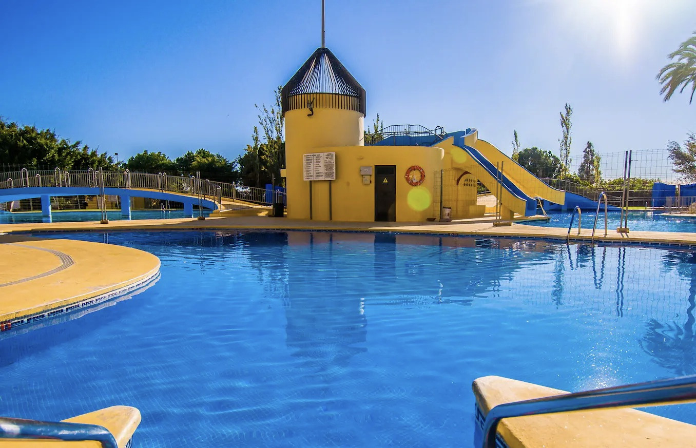 ✔ Piscina con toboganes y zonas ajardinadas