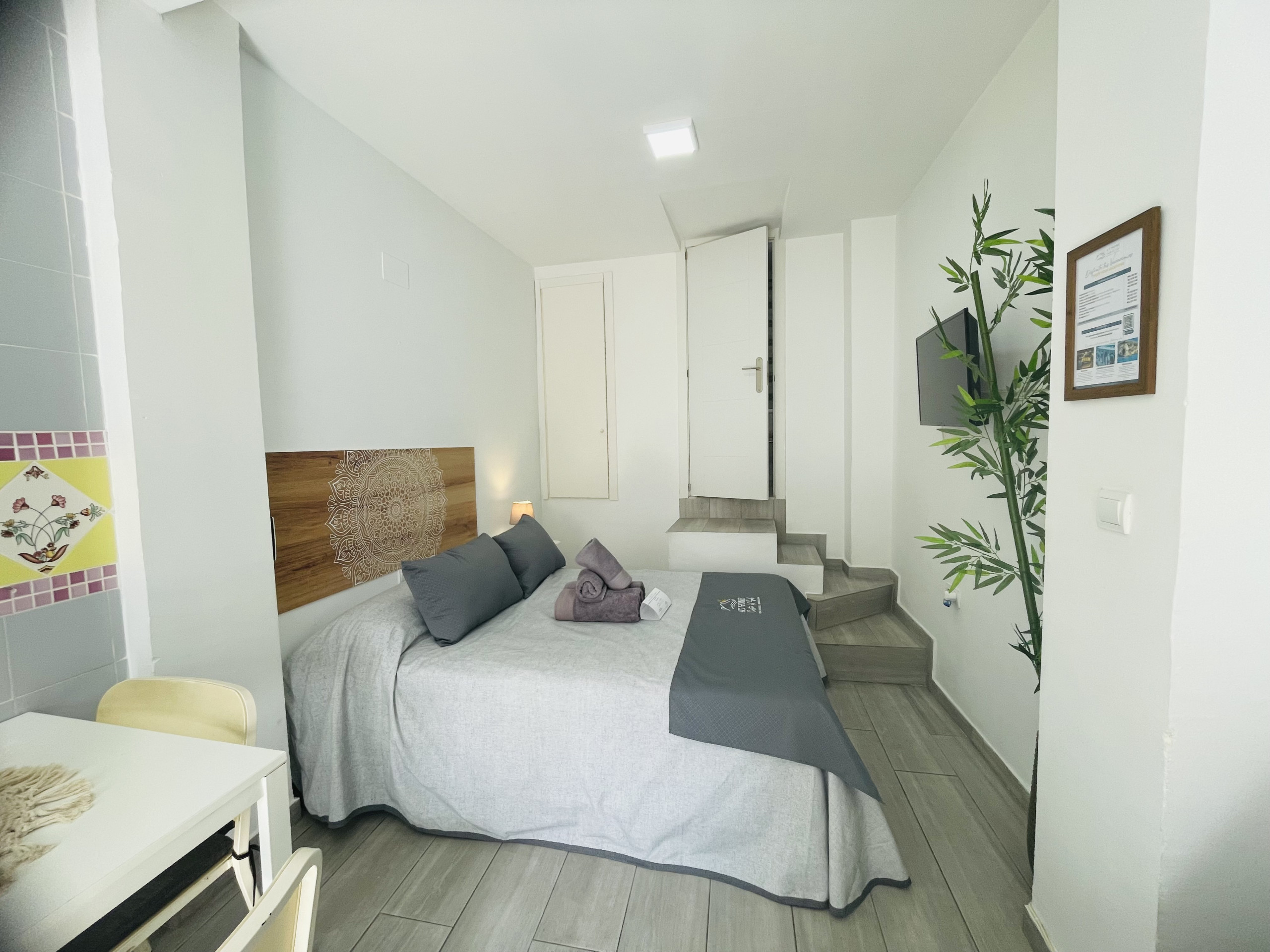 Piso Estudio Burriana en pleno centro de Nerja. Con una cama doble y un sofá cama, es perfecto para 2 adultos y un niño o 3 adultos.