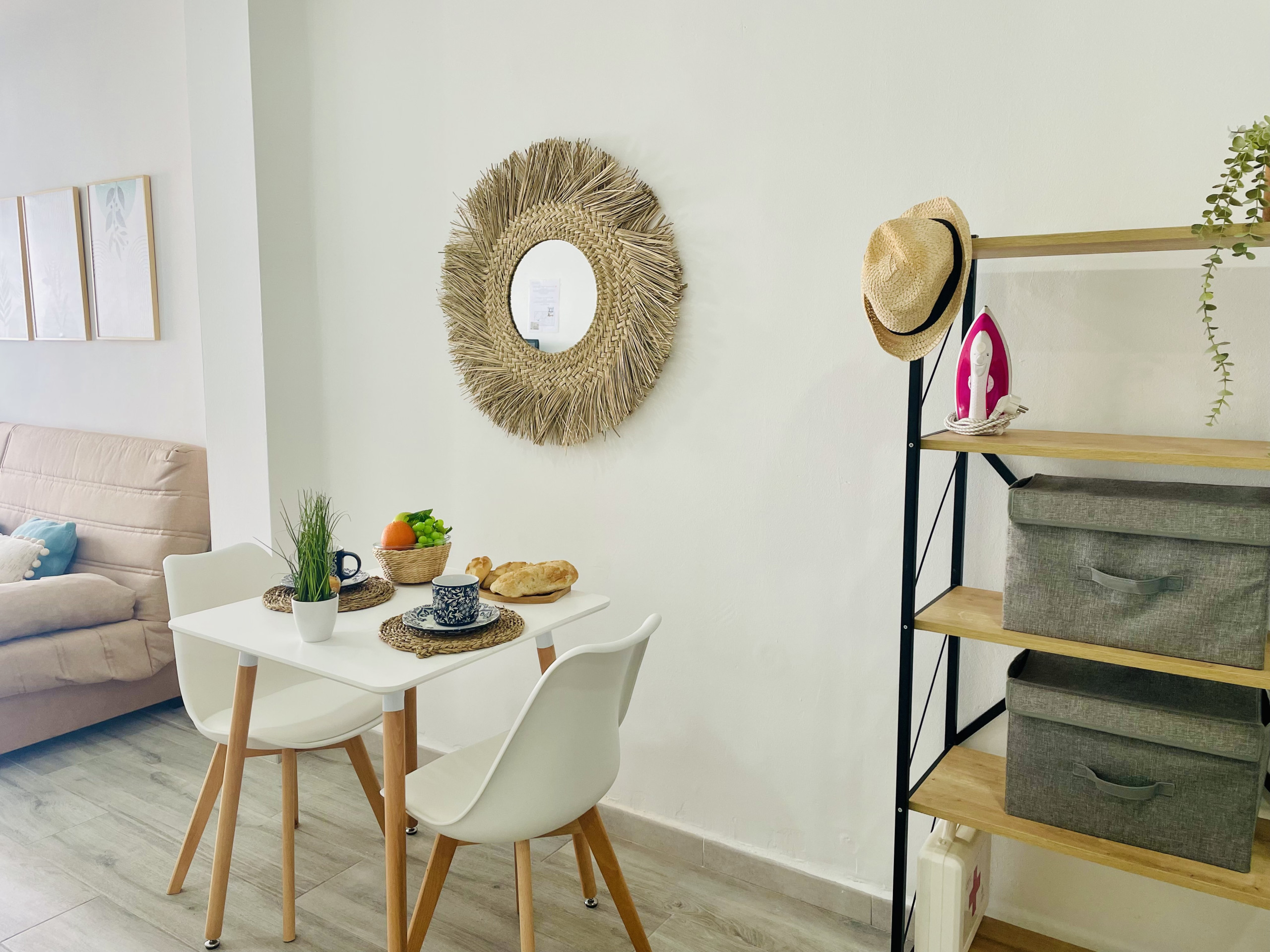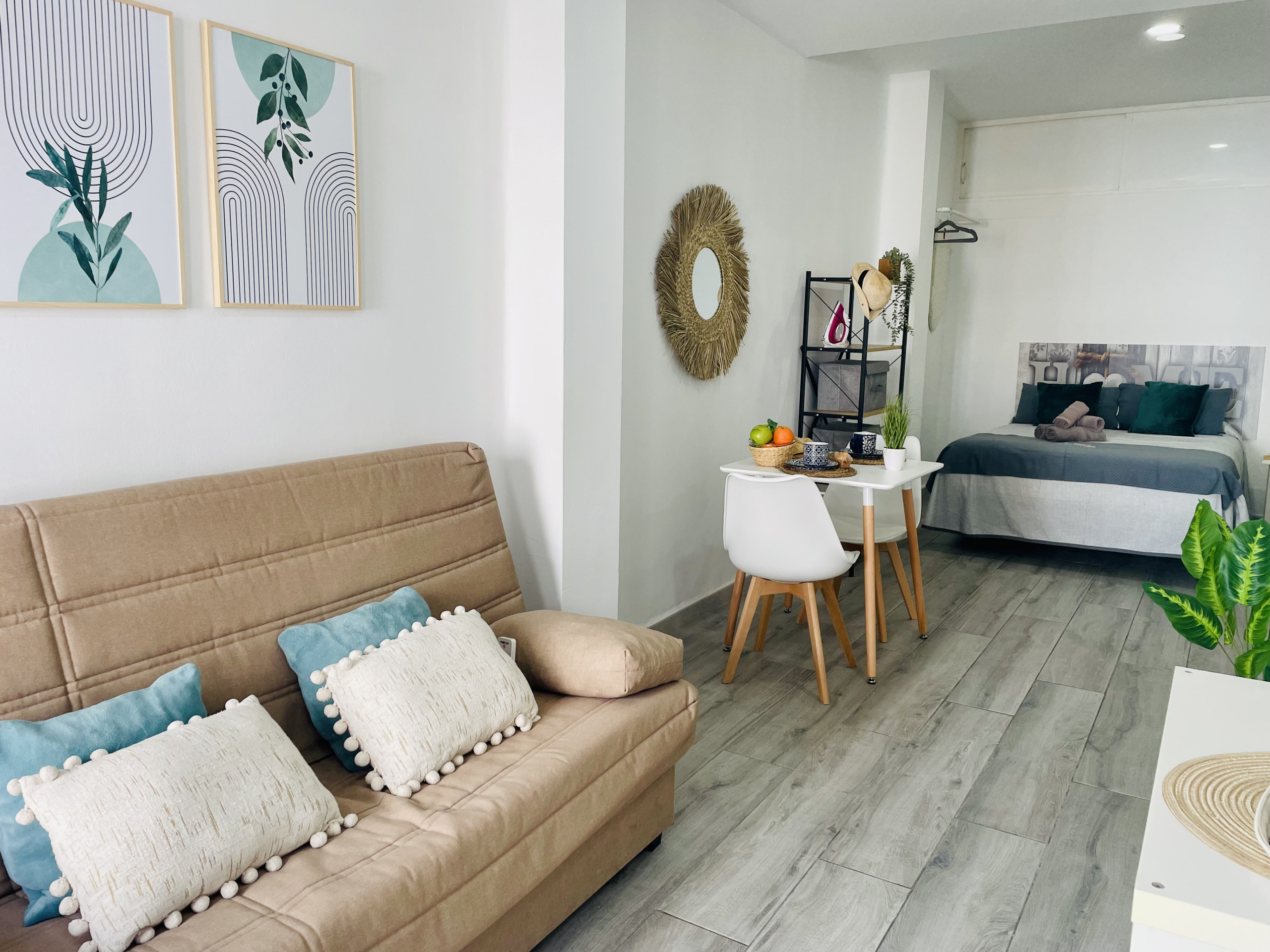 Piso Estudio Burriana en pleno centro de Nerja. Con una cama doble y un sofá cama, es perfecto para 2 adultos y un niño o 3 adultos.