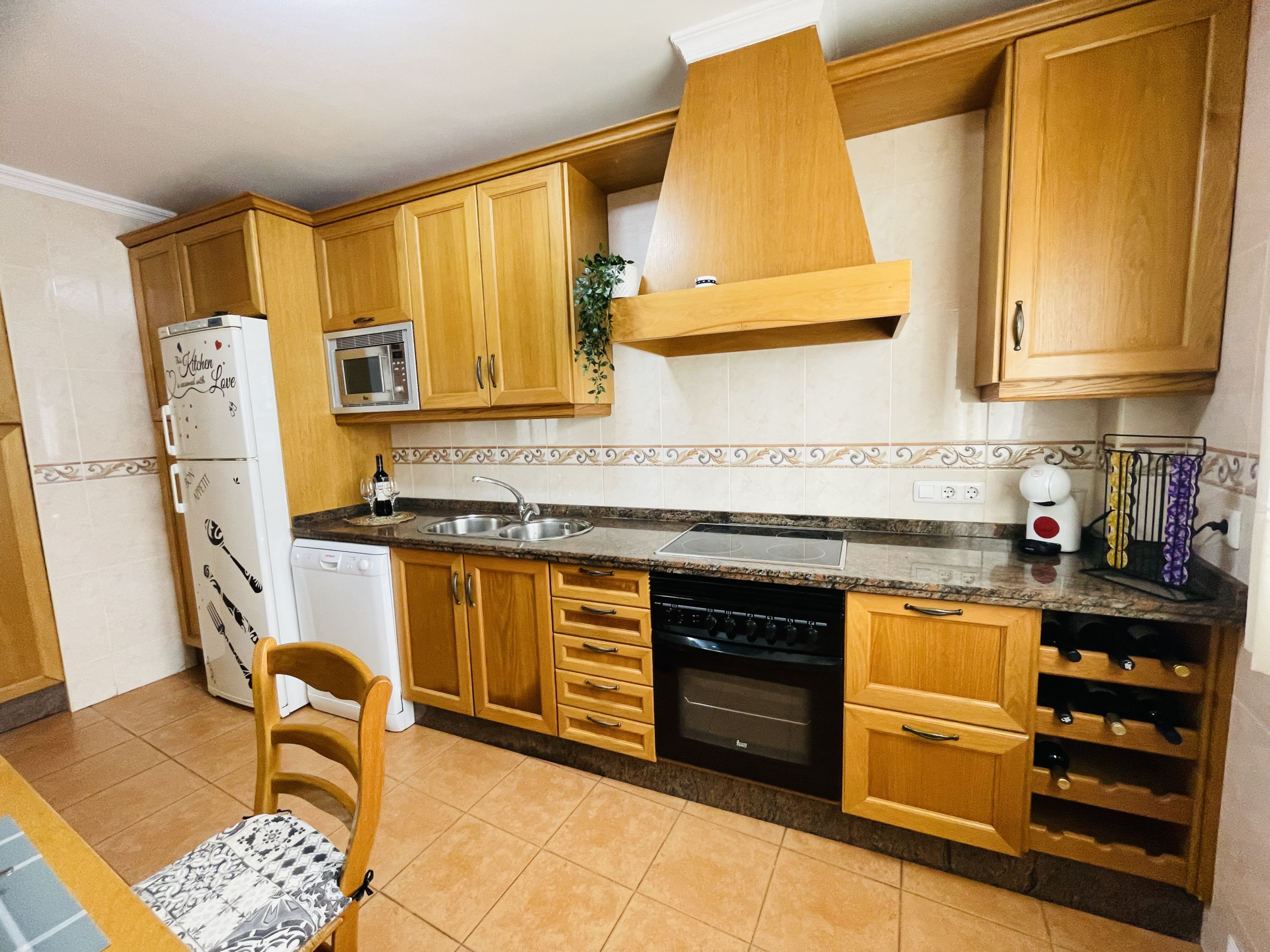 Im Erdgeschoss finden Sie ein großzügiges und lichtdurchflutetes Wohnzimmer, ausgestattet mit TV, Klimaanlage und einem Esstisch, perfekt für gemeinsame Mahlzeiten und gesellige Momente. Die separate Küche ist vollständig ausgestattet, sodass Sie köstliche Gerichte zubereiten können. Zusätzlich gibt es ein kleines Gäste-WC für mehr Komfort.