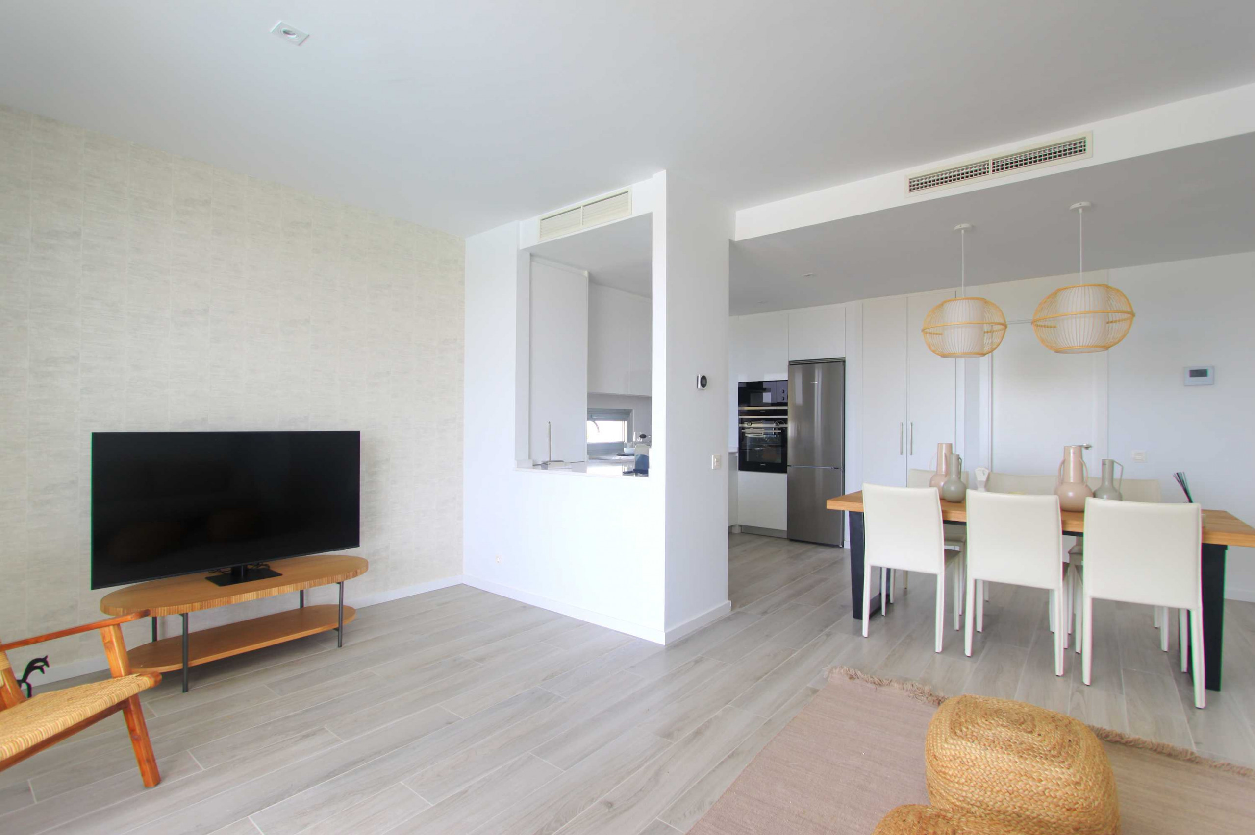 Unsere Erdgeschosswohnung bietet einfachen Zugang und Komfort. Die große Terrasse, ausgestattet mit einer komfortablen Außenlounge und einem Esstisch im Freien, bietet den idealen Rahmen, um den Sonnenuntergang über dem Meer zu bewundern. Die Terrasse öffnet sich vom offenen Wohn-, Küchen- und Essbereich, so dass Sie die erstaunliche Aussicht vom ersten Moment an genießen können.