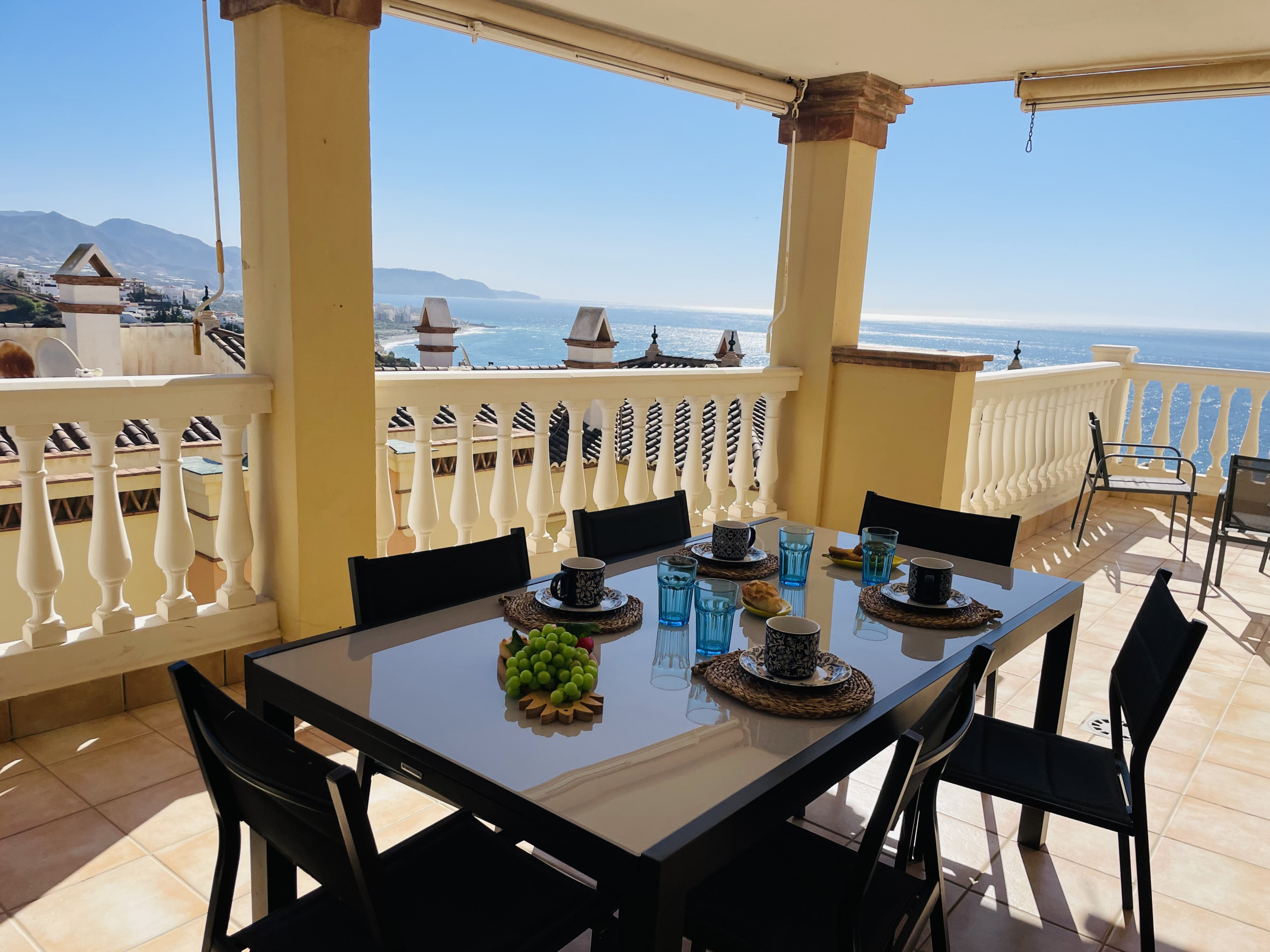 Die Unterkunft besteht aus einem Eingangsbereich, 3 Schlafzimmern, 2 Bädern, einer komplett ausgestatteten offenen Küche sowie einem Wohn- und Esszimmer mit Zugang zu einer großen sonnigen Terrasse mit Blick auf das Meer, die Berge und das Dorf Nerja. Eine Terrasse, die Sie das ganze Jahr über genießen können.