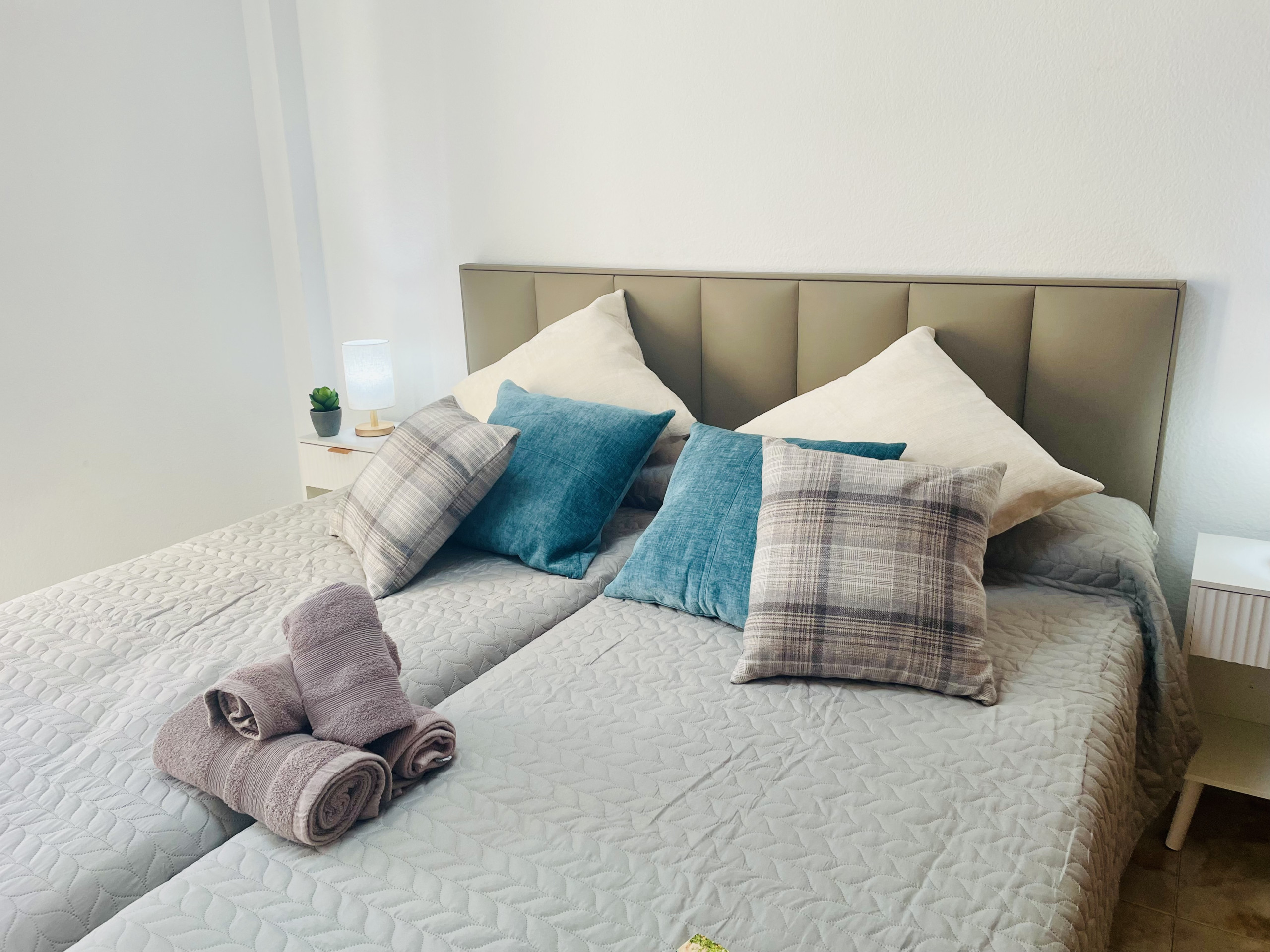 Diese gemütliche Einzimmerwohnung verfügt über zwei Einzelbetten und einen Deckenventilator, ideal zum Ausruhen nach einem Tag am Strand oder bei Spaziergängen. Das vollständige Badezimmer umfasst eine Dusche und eine Waschmaschine und garantiert während des Aufenthalts allen Komfort.