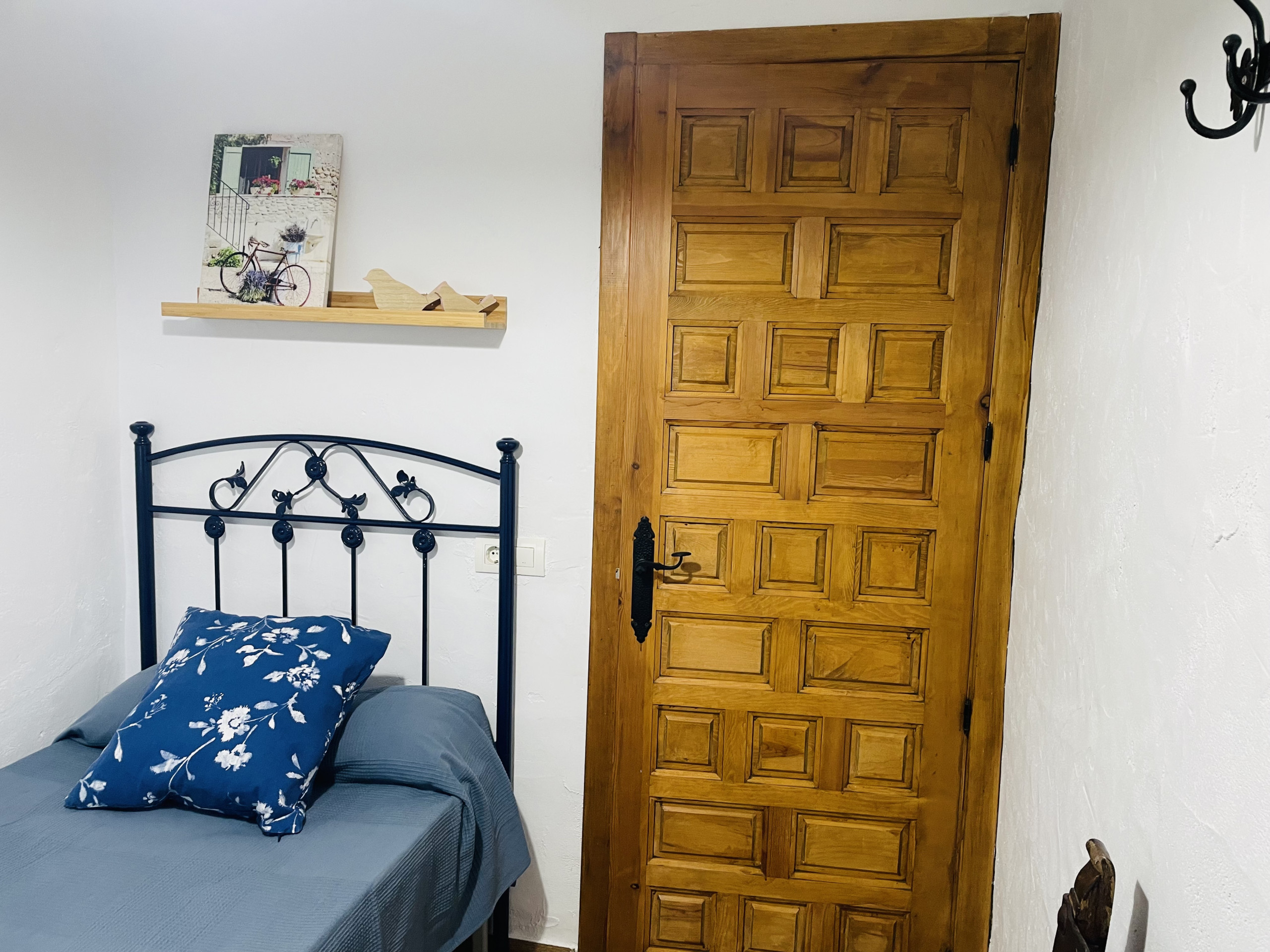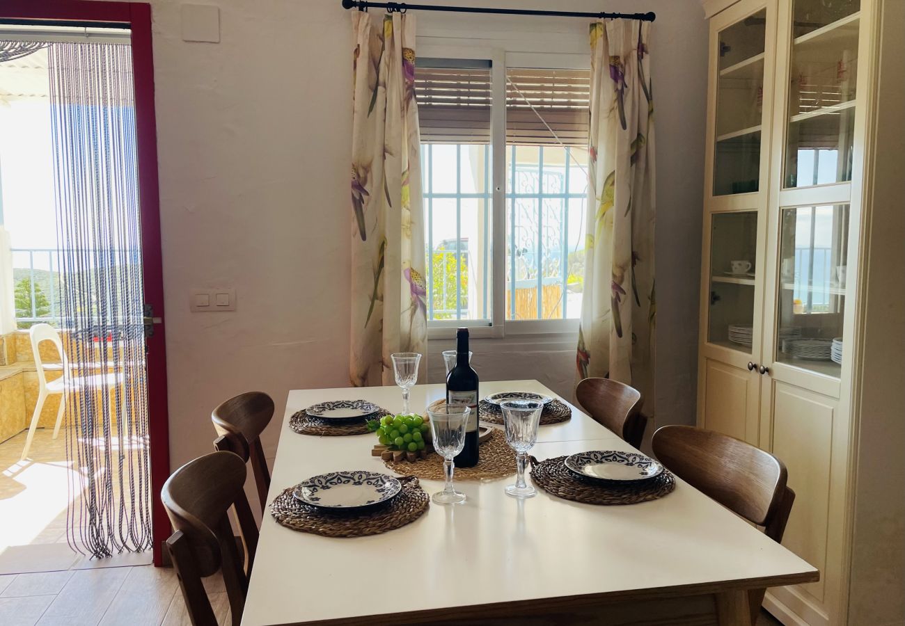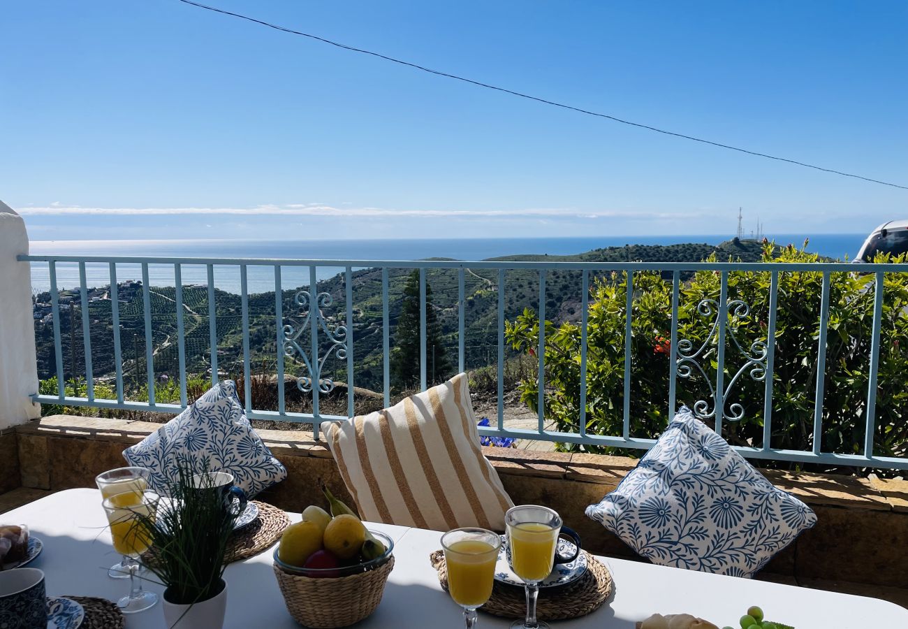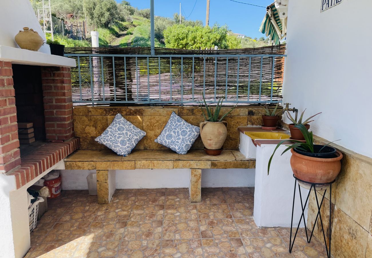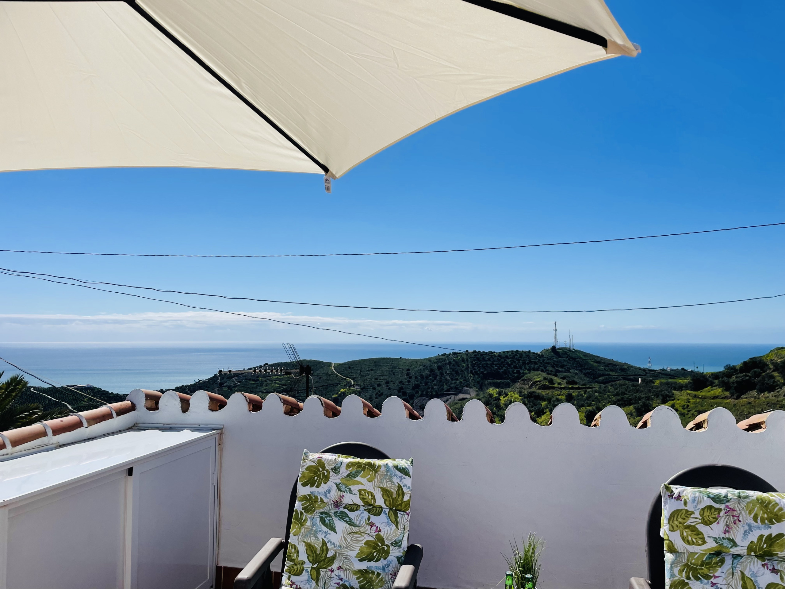 Dieses modern eingerichtete Cortijo verfügt über drei Schlafzimmer: zwei mit Doppelbett und eines mit einem 90 cm breiten Einzelbett. Das gemütliche Wohnzimmer mit Kamin und TV lädt zum Entspannen ein, während draußen eine große Veranda mit Grill den perfekten Rahmen für Mahlzeiten im Freien mit atemberaubendem Meerblick bietet.