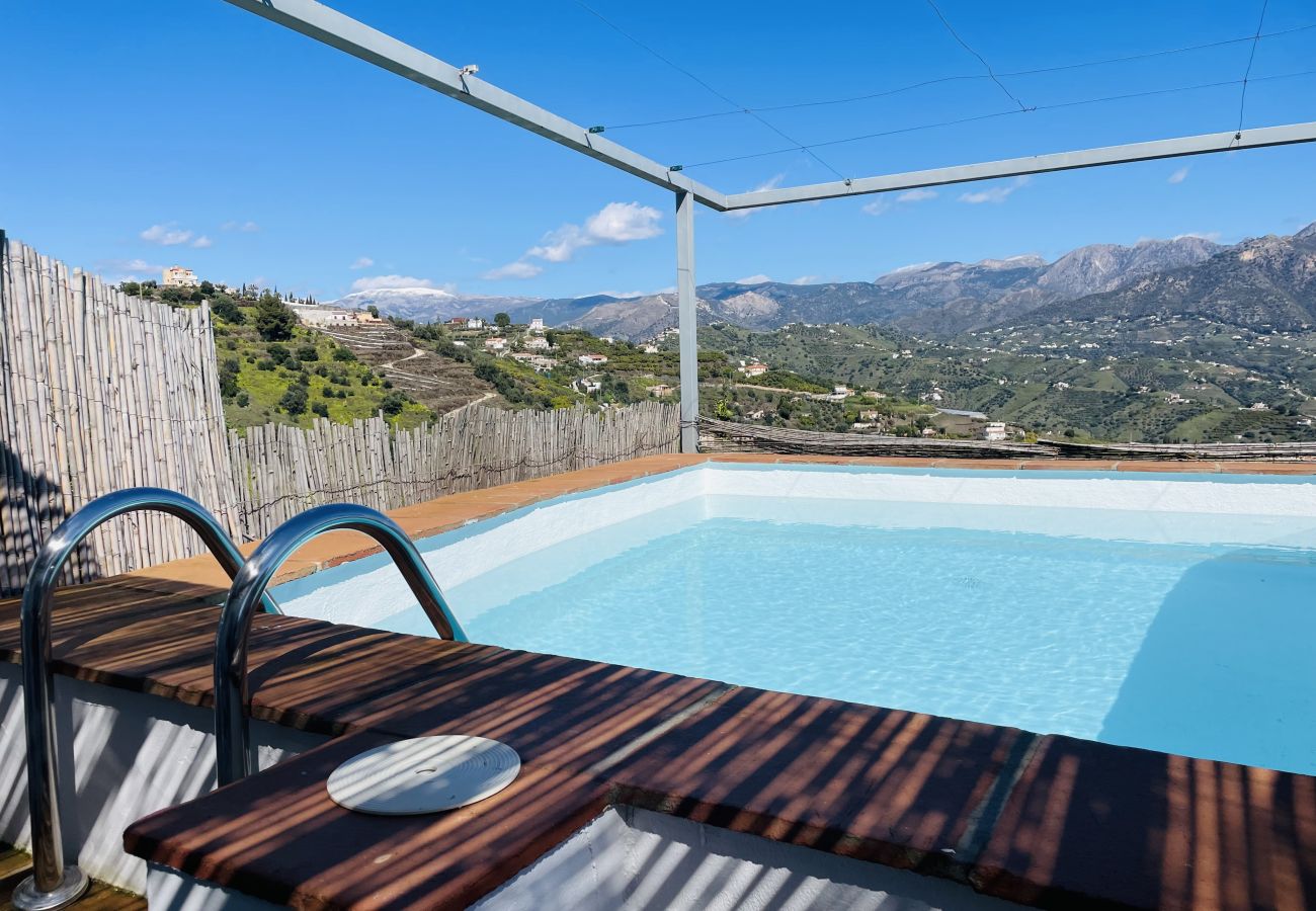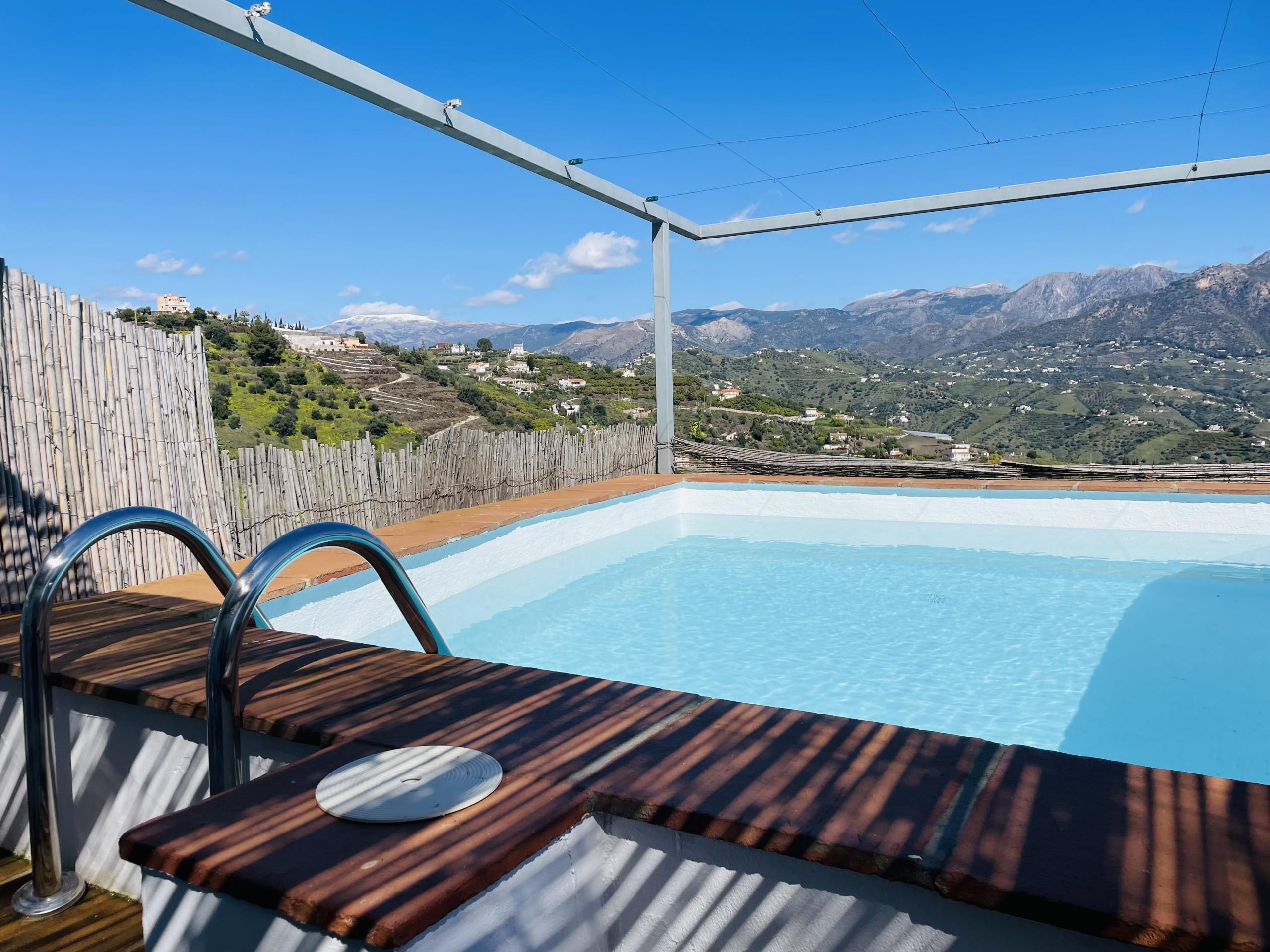 Für entspannte Momente bietet das Cortijo ein kleines Schwimmbecken mit Blick auf die Berge sowie ein privates Solarium auf der Terrasse, ideal zum Sonnenbaden und Genießen des mediterranen Klimas.