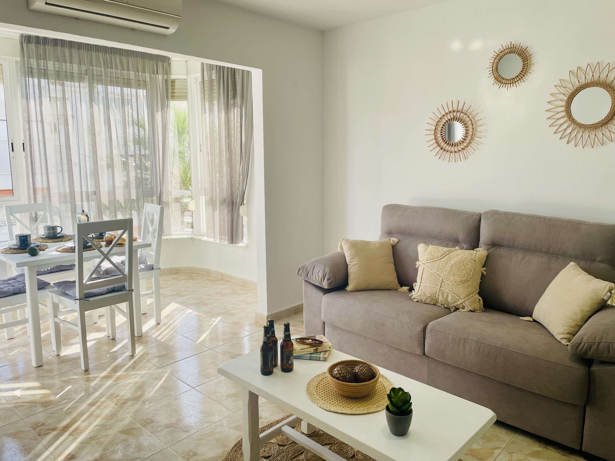 Beautiful apartment located in Torrox-Costa, in one of the towns with the best climate in Europe, just 100 meters from the beach. You can enjoy incredible sea views and the most stunning sunsets. The apartment features 1 double bedroom with a queen-size bed, a small fully equipped kitchen, and a lovely living room with a sofa bed. The location is unbeatable, close to restaurants, beach bars, and shops. Additionally, there is a communal pool in the complex and Wi-Fi access.