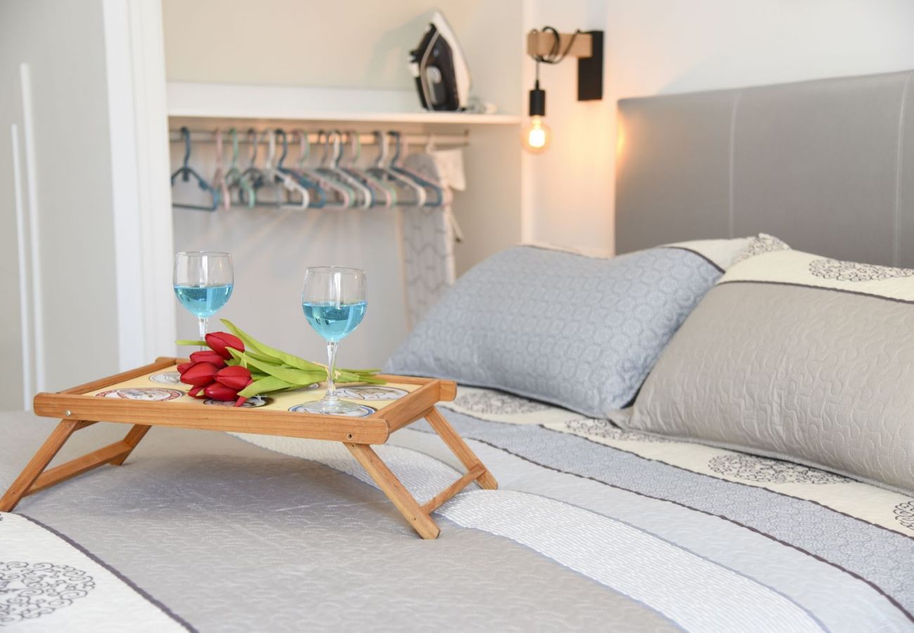 This cosy studio has all the amenities you need for a pleasant stay. Enjoy television for entertainment, and in the fully equipped small kitchen, you'll find a ceramic hob, microwave, fridge, capsule coffee machine, kettle, and cooking utensils. You'll have a comfortable double bed and an additional sofa bed, along with sheets and towels for your comfort. Moreover, the studio has wifi, air conditioning, and everything necessary for you to enjoy wonderful holidays.
