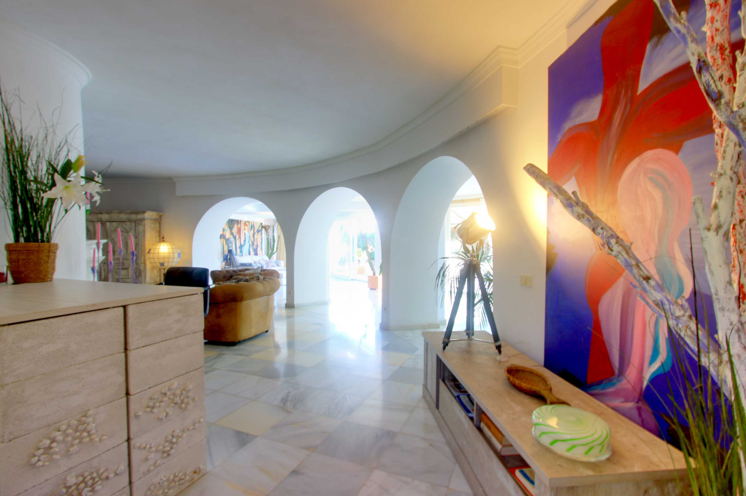 The villa's location is convenient for exploring the surrounding areas, including the famous Puerto Banus, which is just 12 km away. Puerto Banus offers an array of restaurants, beautiful beaches, designer boutiques, beach bars, shopping centers, and more.