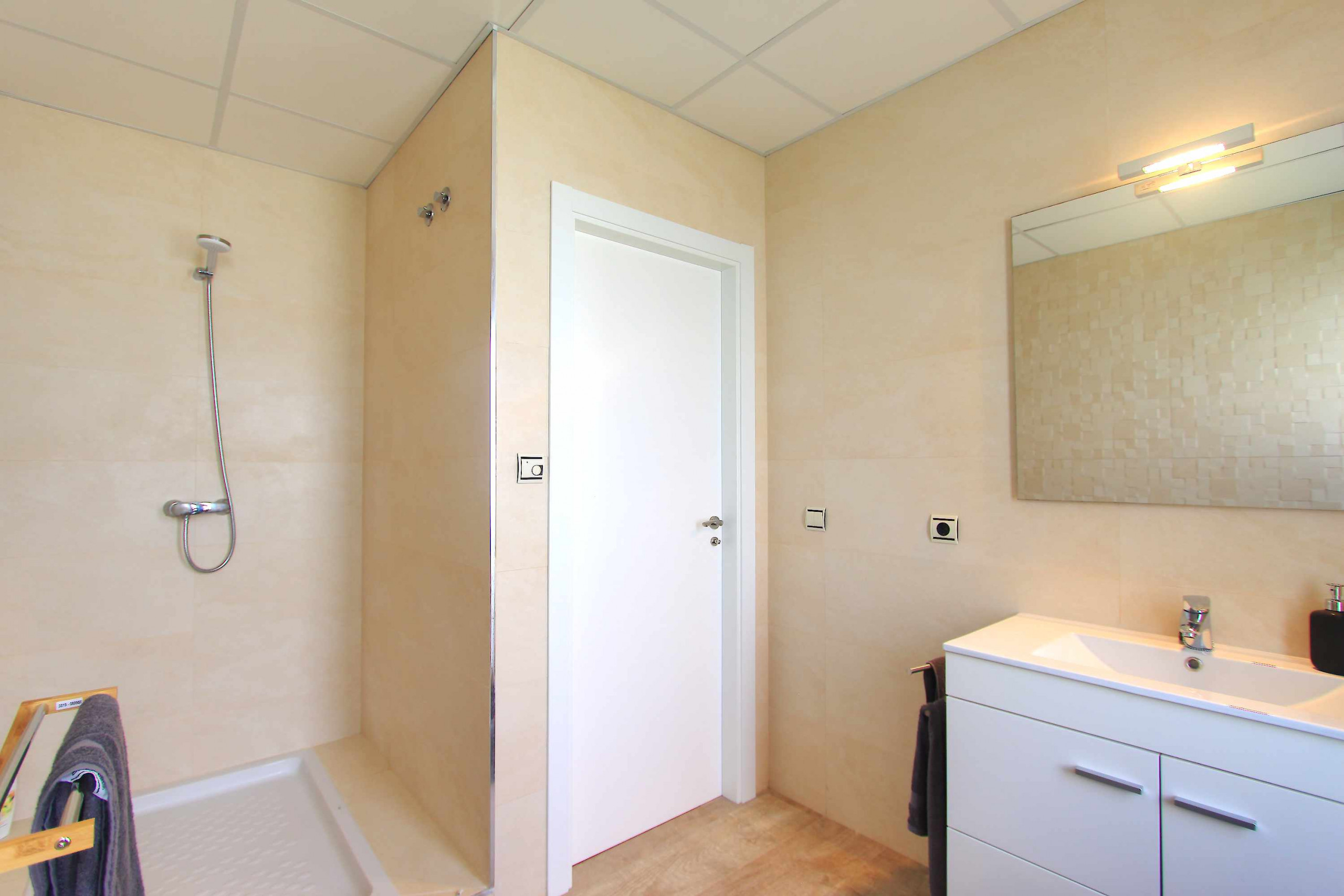 The villa features a spacious terrace with a panoramic view of the golf course, making it an ideal place to relax and enjoy the beautiful surroundings. The highlight of the property is the roof terrace with a daybed, providing the perfect spot to unwind and take in the sunset. The cozy pool area also features a daybed for additional relaxation.