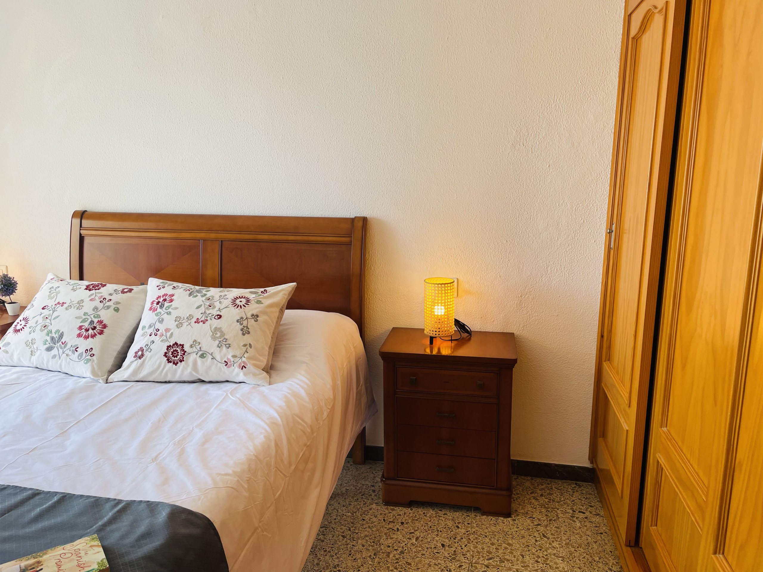 La chambre principale, avec un lit double, la climatisation et un balcon privé, où vous pourrez admirer de belles vues sur la mer.