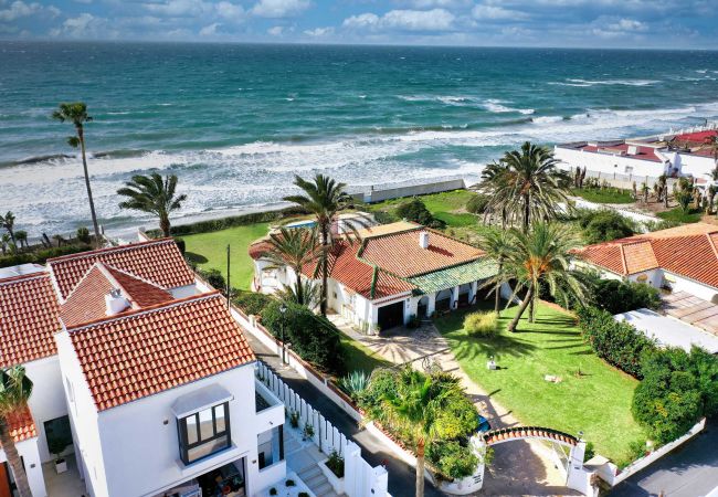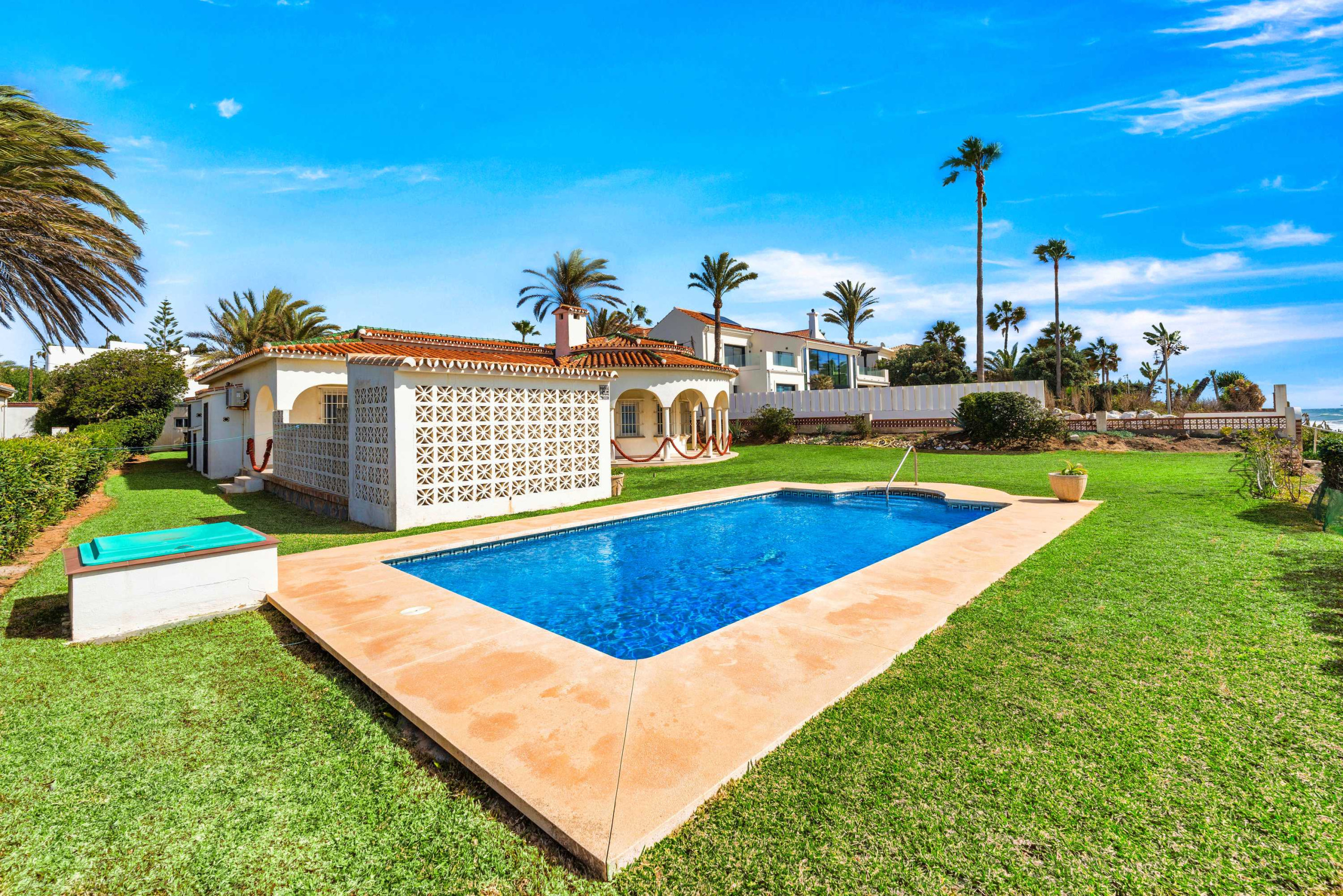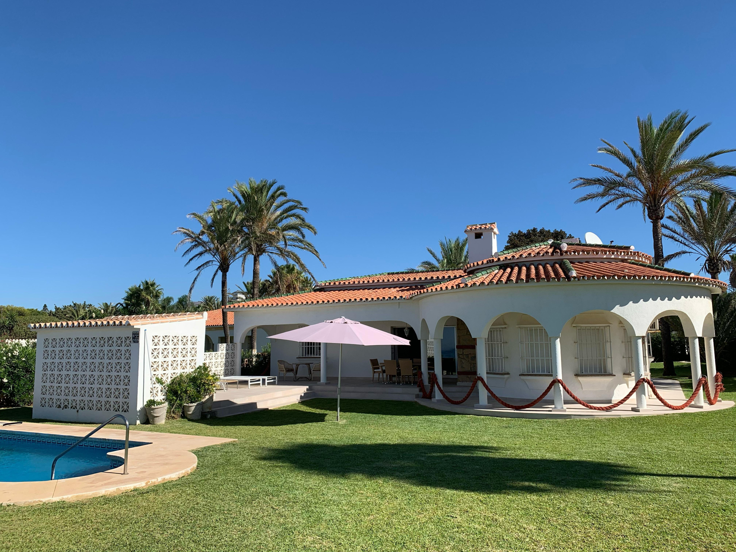 Villa à Marbella qui possède 3 chambre(s) et Capacité pour 7 personnes. Logement de 200 m² accueillant et extérieur, situé en front de plage, avec vue sur la mer et le jardin. La location se trouve à 0 m de la gare, 5 m de la plage de sable "marbesa beach", 35 m de l'aéroport "malaga", 200 m de la cafétéria "2000 cafee", 300 m du restaurant "sinbad", 700 m de la gare routière "reserva", 900 m du supermarché "open cor", 2 km du domaine de Golf "elviria", 3 km de l'hôpital "costa del sol", 7 km de la ville "marbella", 35 km de l'aéroport "malaga" et il est situé dans une zone idéale pour familles zone et près de la mer.Elle dispose de jardin, mobilier de jardin, clôture, 20 m² de terrasse, lave-linge, sèche-linge, barbecue, fer à repasser, accès internet (wifi), sèche-cheveux, alarme, chauffage électrique, climatisation, piscine privée, garage même bâtiment, 1 Télévision, tv satellite (Langues: Espagnol, Anglais).La cuisine américaine, à vitrocéramique, est équipée avec réfrigérateur, micro-ondes, four, congélateur, lave-vaisselle, vaisselle/couverts, ustensiles/cuisine, cafetière, grille pain, bouilloire et presse-agrumes.