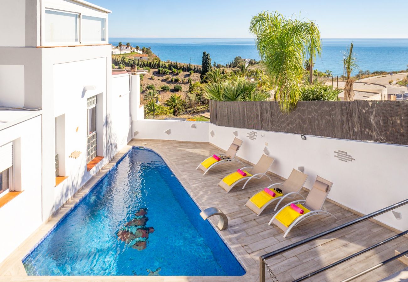 La Villa Marrakech à Peñoncillo, Torrox Costa, Málaga, est l'endroit idéal pour des vacances relaxantes et luxueuses. Avec son design moderne, sa terrasse, son espace barbecue, sa piscine privée et sa vue panoramique sur la mer et les montagnes, elle vous offrira une expérience inoubliable tout en profitant de tout ce que la magnifique Costa del Sol a à offrir.