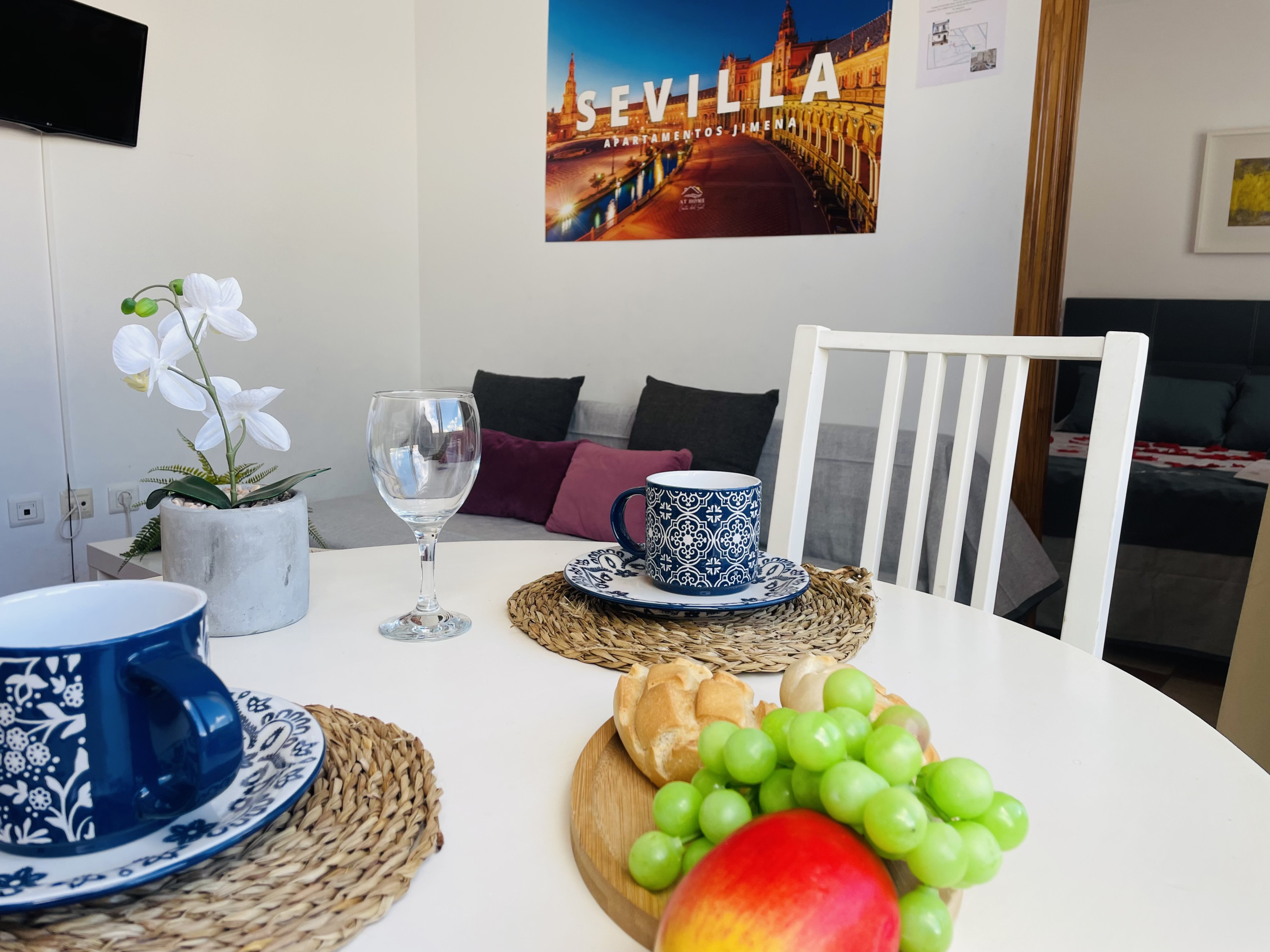 Questo appartamento è completamente attrezzato per garantire un soggiorno confortevole. Dispone di un accogliente soggiorno con cucina americana, una camera da letto con letto matrimoniale, un bagno, un piccolo balcone e un incantevole patio andaluso.
