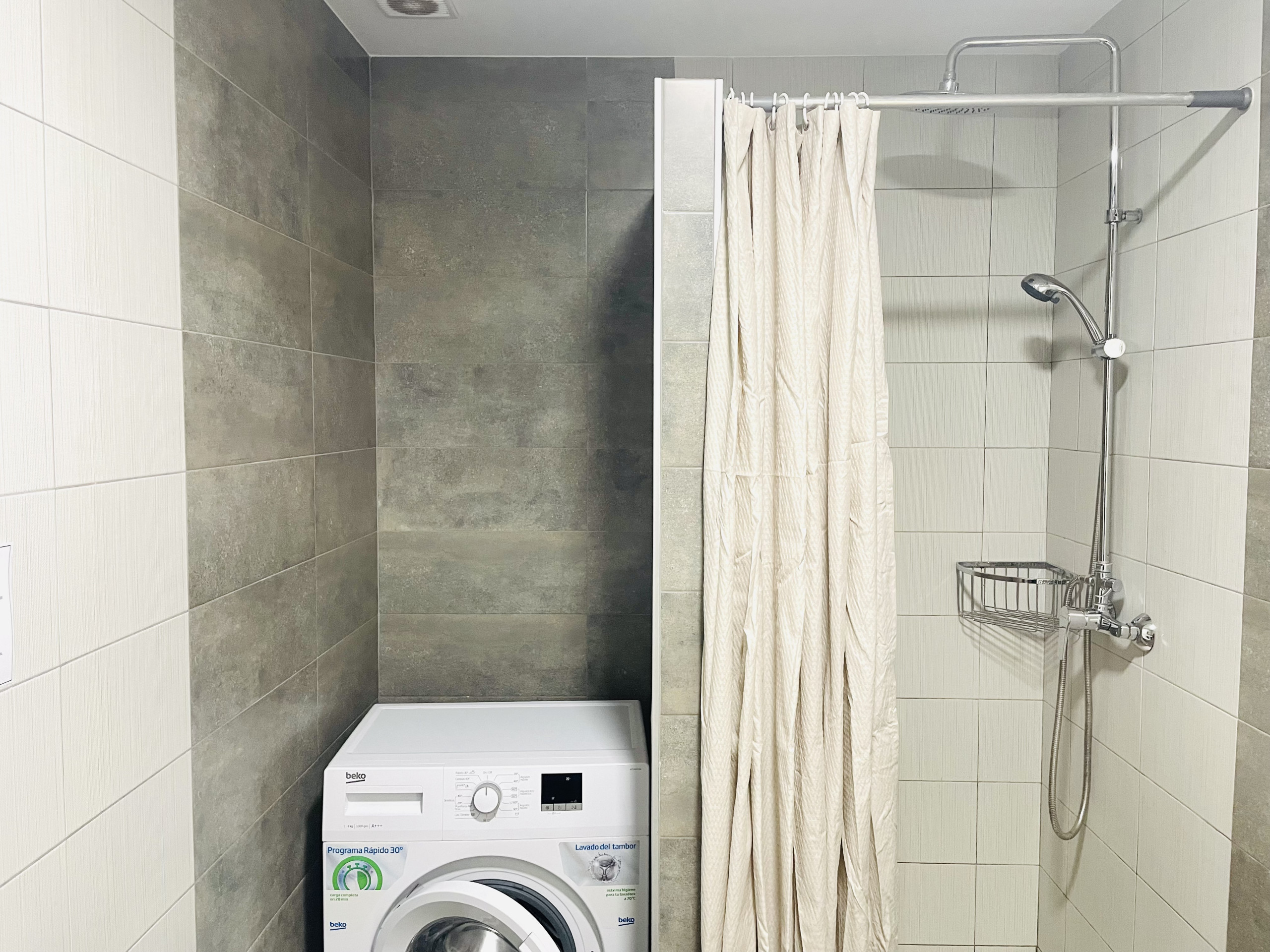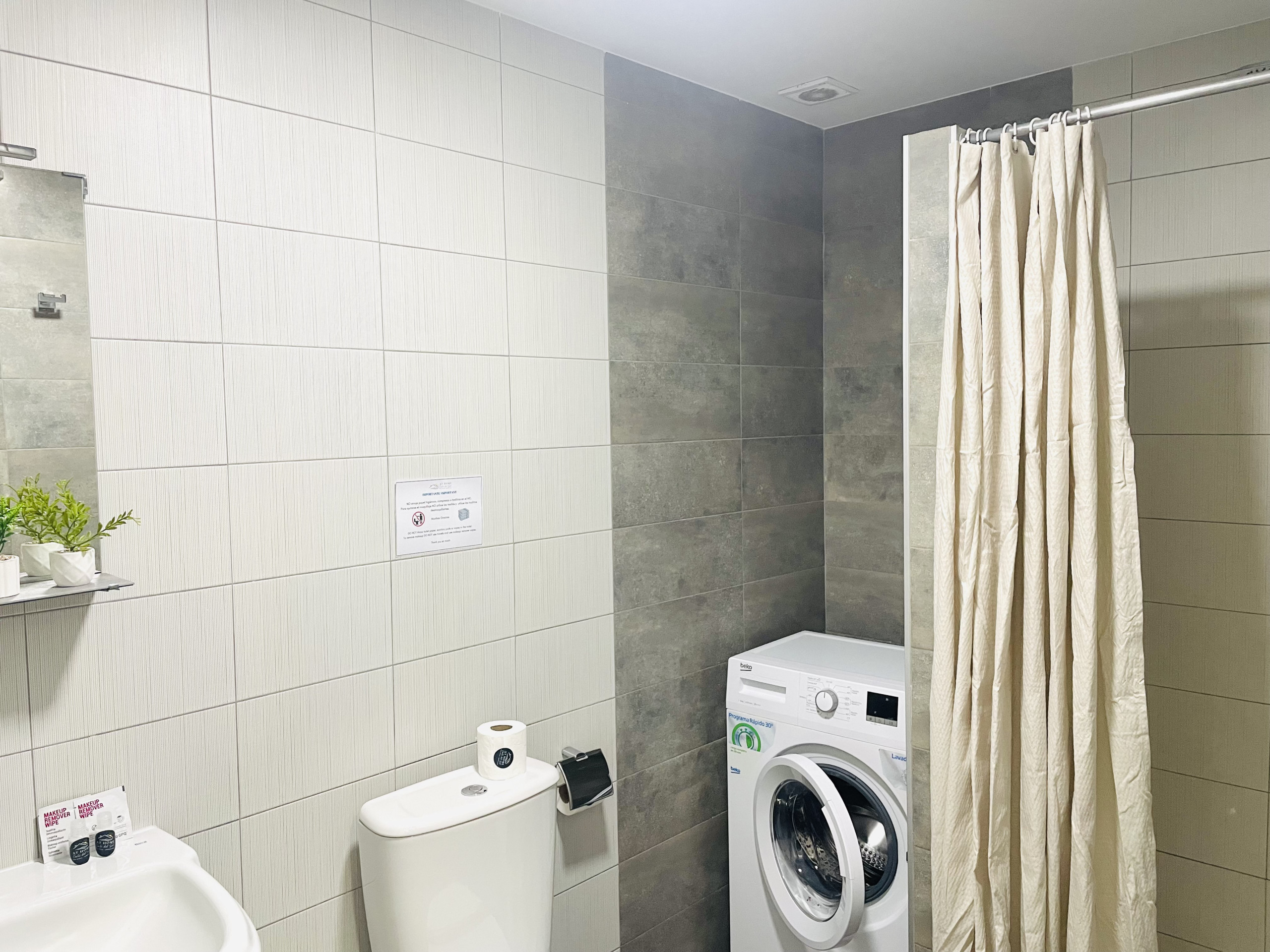 Questo accogliente appartamento con 1 camera da letto dispone di due letti singoli con ventilatore a soffitto, ideale per rilassarsi dopo una giornata in spiaggia o esplorando la zona. Il bagno completo include doccia e lavatrice per la tua comodità.