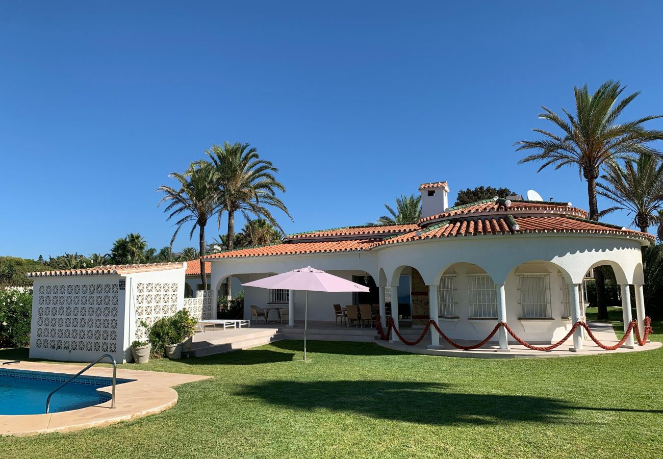 La villa a Marbella ha 3 camera(e) da letto e capacità per 7 persone. Alloggio di 200 m² accogliente e esterno, posizionato in fronte mare, con vista al mare e al giardino. Si trova a 0 m dalla stazione dei treni, 5 m dalla spiaggia di sabbia "marbesa beach", 35 m "malaga", 200 m "2000 cafee", 300 m "sinbad", 700 m dalla stazione degli autobus "reserva", 900 m dal supermercato "open cor", 2 km dal campo di Golf "elviria", 3 km "costa del sol", 7 km della città "marbella", 35 km dall'aeroporto "malaga" e si trova in una zona ideale per famiglie zone e vicino al mare.Ha giardino, giardino arredato, casa recintata, 20 m² della terrazza, lavatrice, asciugatrice, barbecue, ferro da stiro, accesso internet (wifi), asciugacapelli, allarme, riscaldamento radiatori elettrici, aria condizionata, piscina privata, garage in in struttura, 1 Televisore, tv satellitare (Lingue: Spagnolo, Inglese).La cucina americana, a vetroceramica, è attrezzata con frigorifero, microonde, forno, congelatore, lavastoviglie, stoviglie/posate, utensili da cucina, caffettiera, tostapane, bollitore e spremi agrumi.