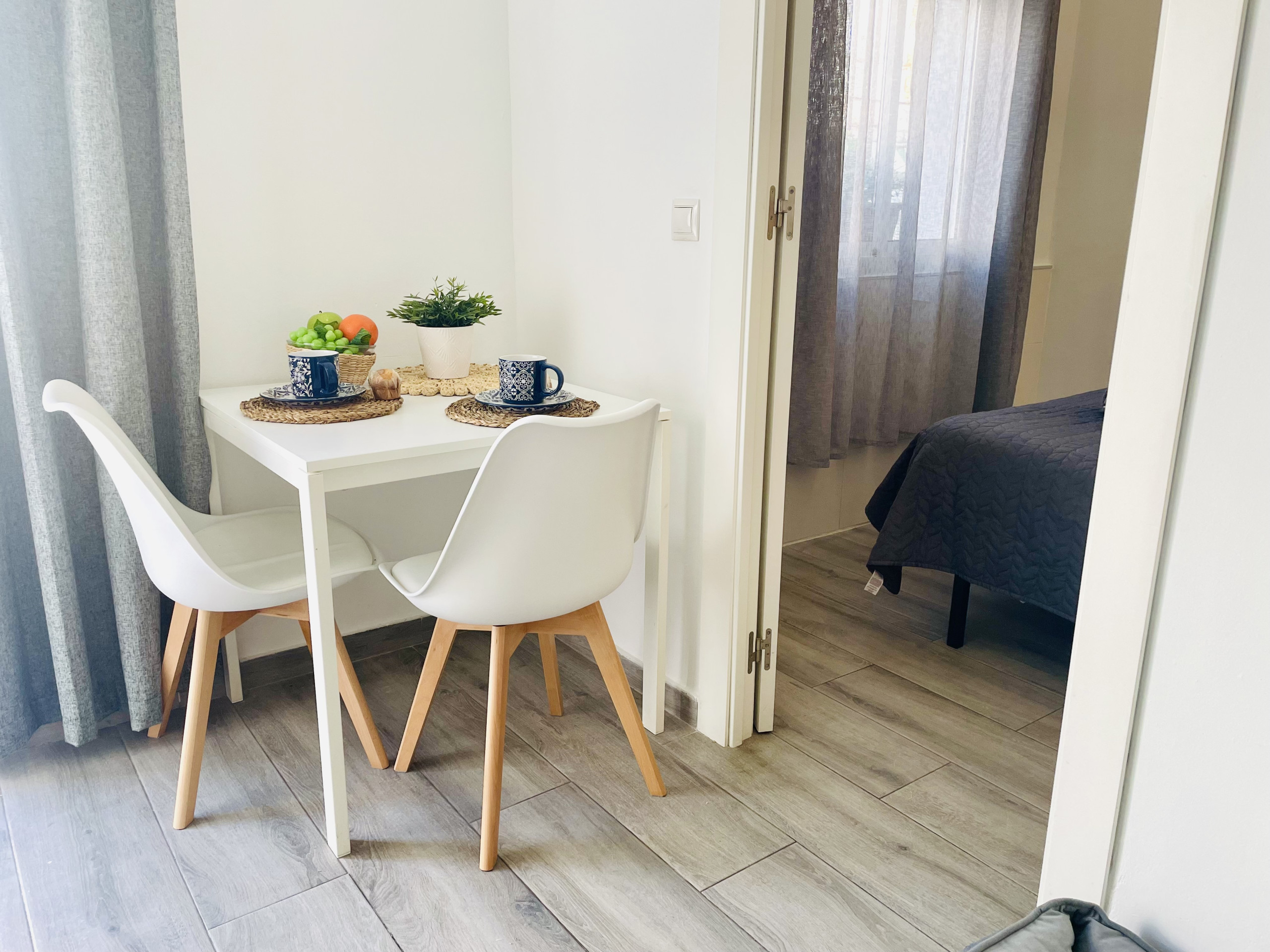 Este acolhedor apartamento está totalmente equipado para satisfazer todas as suas necessidades. A sala possui uma cozinha incorporada que dispõe de uma ampla gama de comodidades, como frigorífico, máquina de café de cápsulas, chaleira, micro-ondas, torradeira, entre outros. Além disso, conta com um sofá confortável, ar condicionado e televisão para o seu entretenimento. No quarto, encontrará uma cama de casal confortável e um armário espaçoso para guardar os seus pertences. A casa de banho está equipada com um chuveiro moderno e um secador de cabelo.