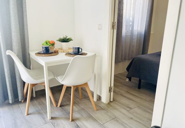 Este apartamento está completamente equipado para o teu conforto. Conta com uma acolhedora sala com cozinha americana, um quarto com uma cama de casal confortável, uma casa de banho com base de chuveiro e uma sala com sofá-cama. Aqui encontrarás tudo o que precisas para uma estadia agradável.