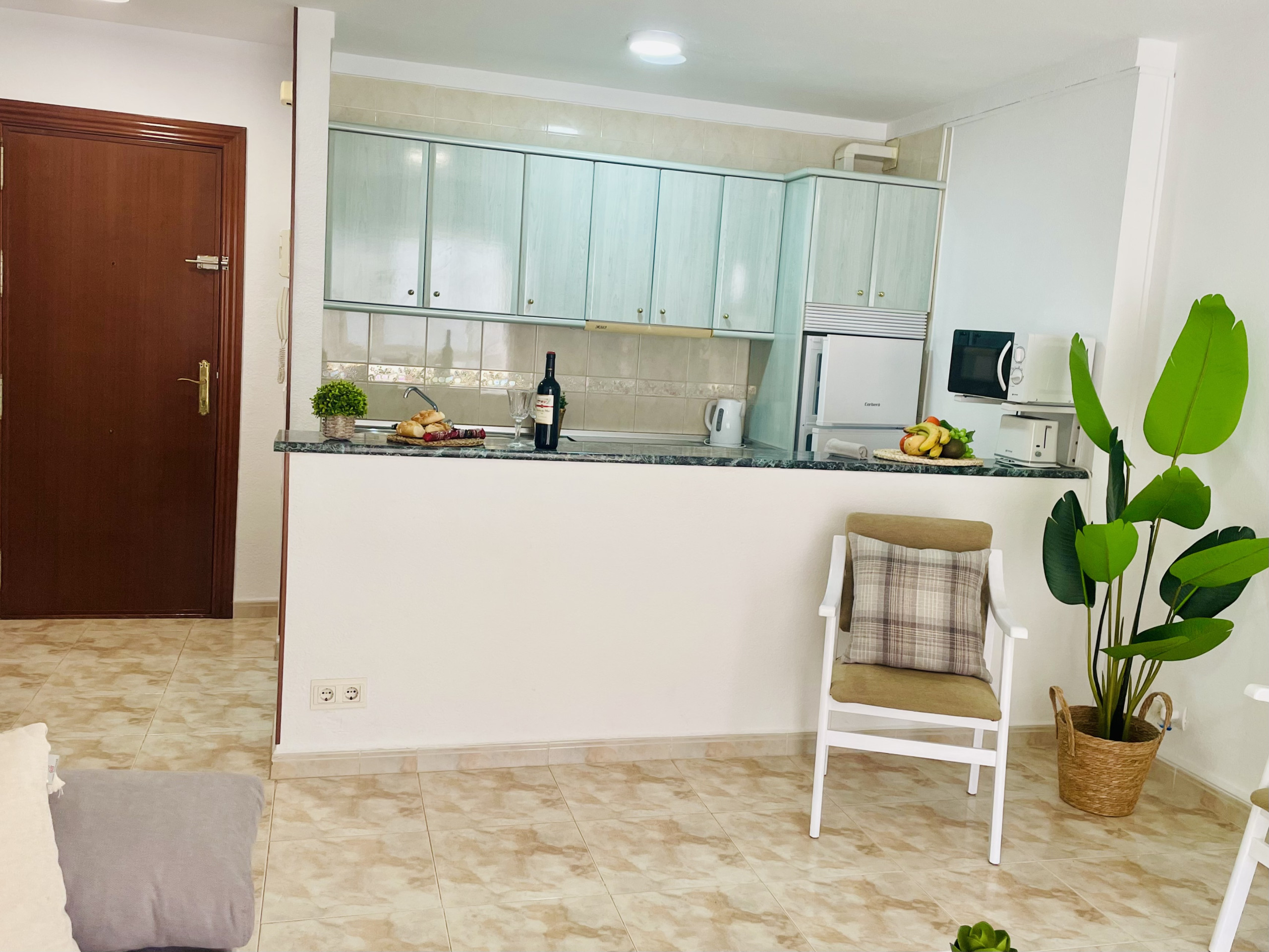 Belíssimo apartamento localizado em Torrox-Costa, uma das cidades com o melhor clima da Europa, a apenas 100 metros da praia. Você poderá desfrutar de vistas incríveis para o mar e dos mais belos pores do sol. O apartamento possui 1 quarto de casal com uma cama queen-size, uma pequena cozinha totalmente equipada e uma sala de estar encantadora com um sofá-cama. A localização é imbatível, próxima a restaurantes, bares de praia e lojas. Além disso, o condomínio conta com uma piscina comunitária e acesso Wi-Fi.
