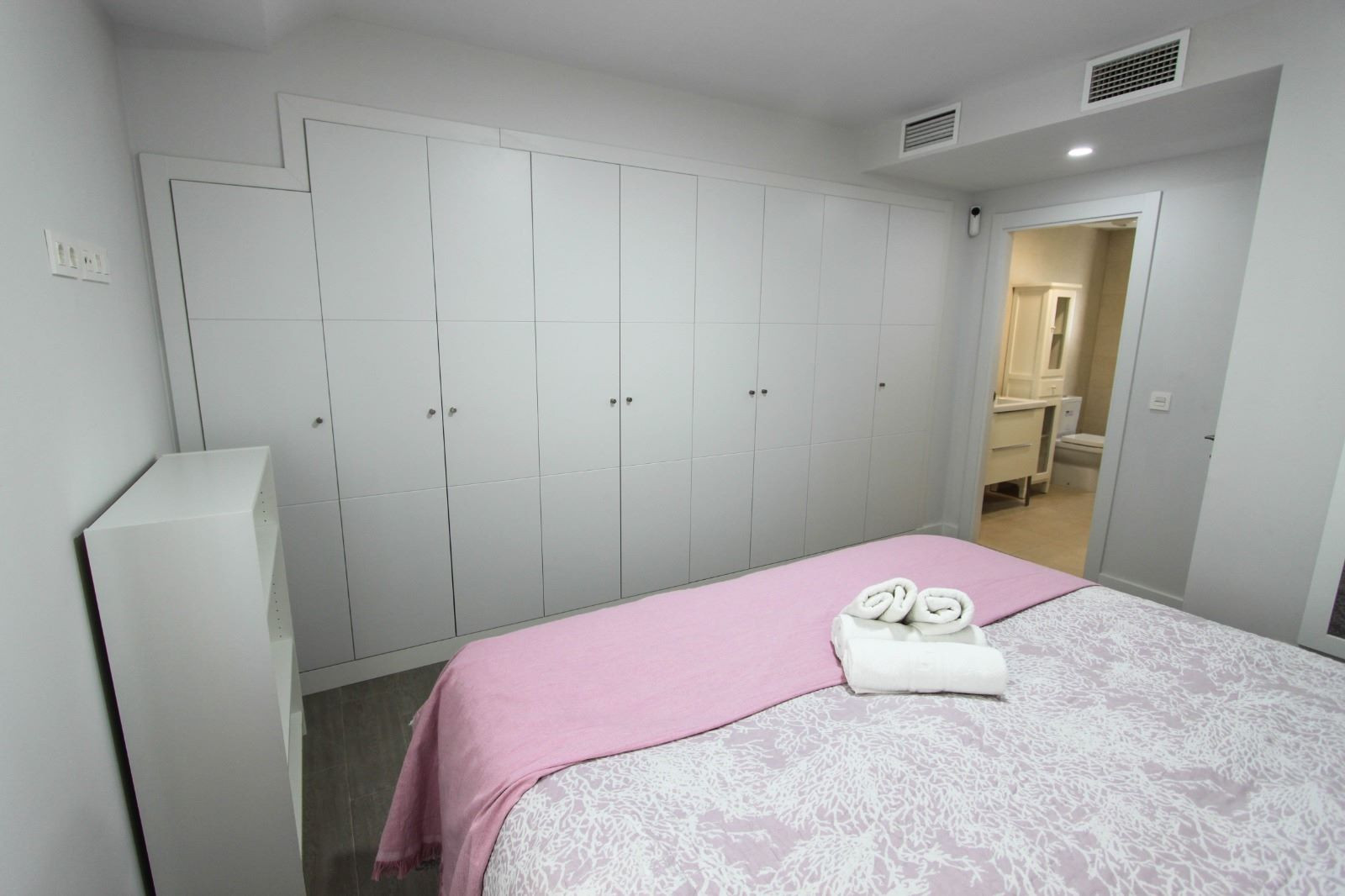 Este ático exclusivo possui dois quartos elegantemente decorados. A suíte principal é um refúgio espetacular, adornada com uma cama king-size de 2 metros. O segundo quarto oferece duas camas de solteiro de 90 metros, ambos equipados com armários embutidos, garantindo espaços organizados e funcionais.