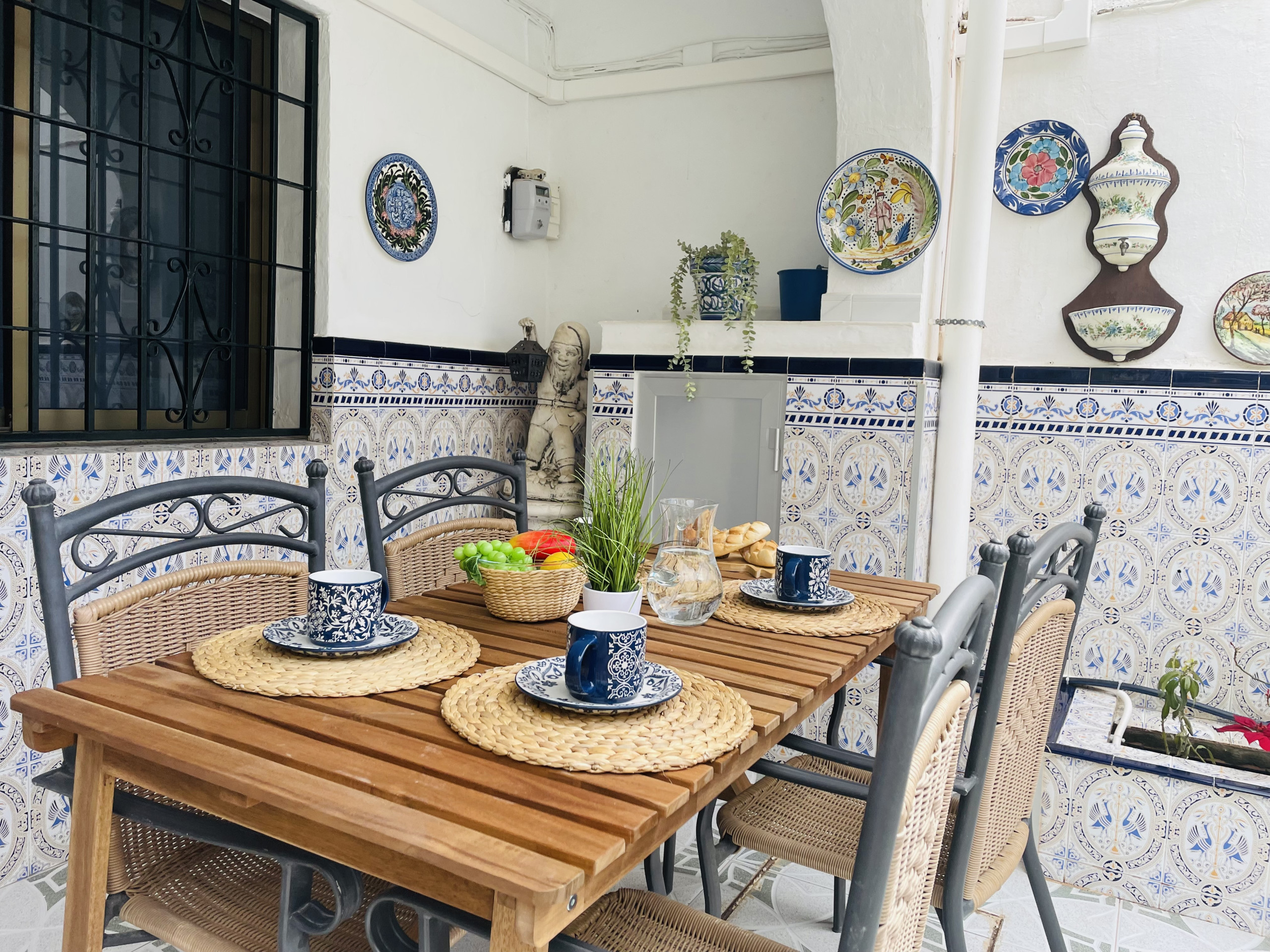 Ao entrar, você será recebido por um lindo pátio andaluz, um espaço ideal para tomar café da manhã ao ar livre ou relaxar em um ambiente fresco e tranquilo.