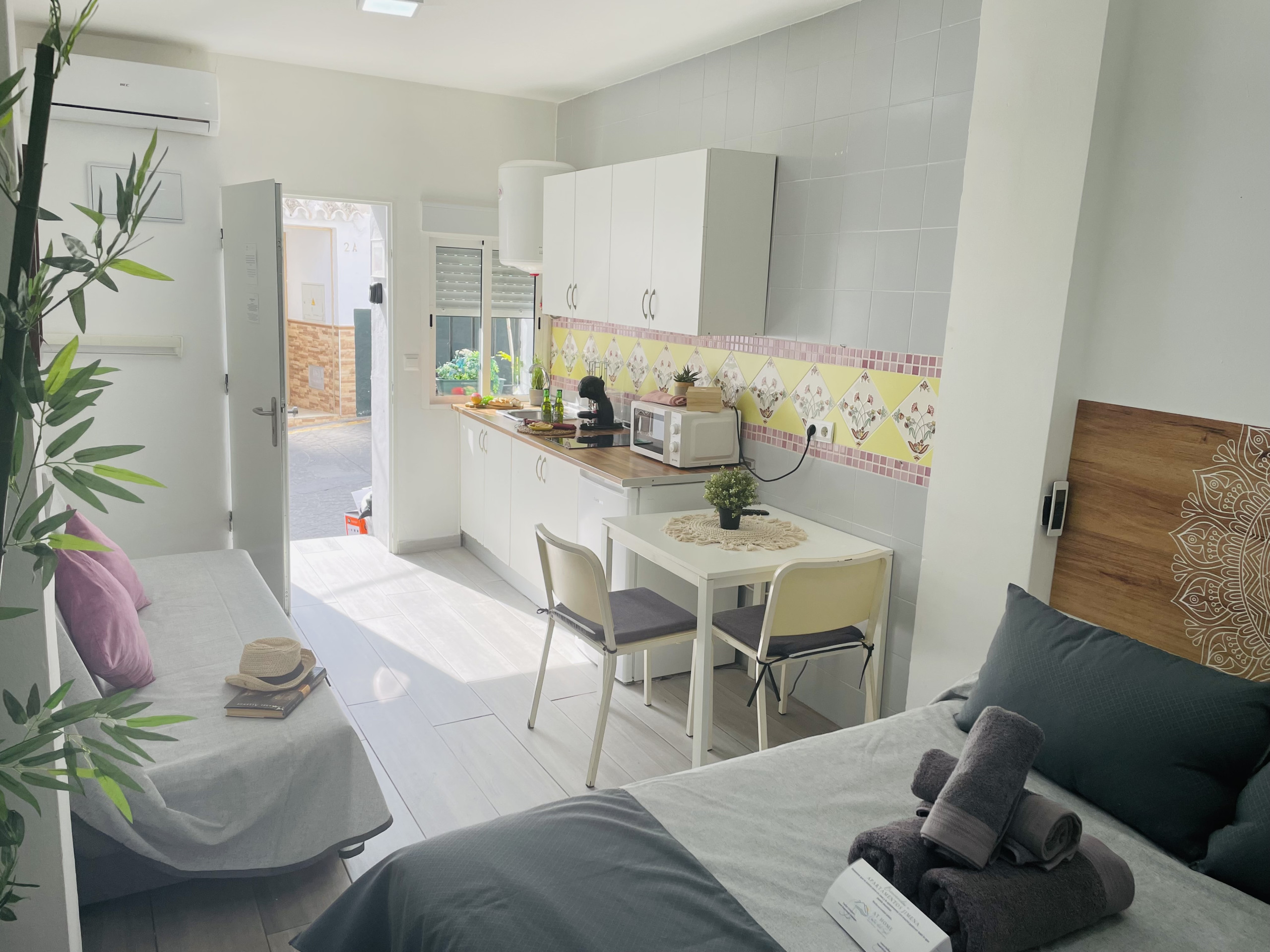 Estúdio Burriana no centro de Nerja. Com uma cama de casal e um sofá-cama, é perfeito para 2 adultos e uma criança ou 3 adultos.